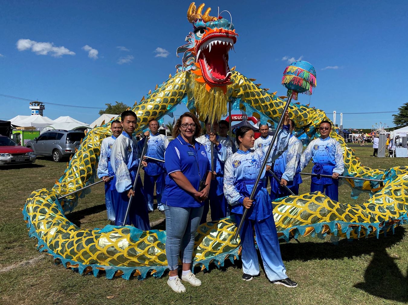 库姆秀的负责人丽泽尔·韦斯特曼(Lizelle Westman)介绍这次活动大约有三百个商家参加。她说:“今年是第九十八届库姆秀,这个展览会属于农牧展。由于人口结构都在变化,中国社区也很大,所以我们希望他们有机会来参加新西兰本地人的展会。当地人们喜欢法轮功学员的表演,有这样的表演意义非凡。昨天的游行,我还把法轮功队伍(腰鼓队和舞龙队)放在打头阵的位置。我很欣赏法轮功团体为这次活动所做的努力。这是不同的文化互动,非常的好。我觉得我们对所有的精神追求、宗教,不同的信仰等等都持开放态度。我们很开放,并乐于拥抱这些信仰。因为这就是新西兰,我们都在这片国土上。”