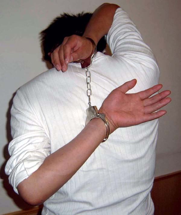 到看守所之后,因为我是无罪,信仰无罪,发资料都是合法的,所以我就是绝食绝水,抗议对我的这种关押、殴打。第二天就把手铐给我戴上了,后来又把脚镣给我戴上了。