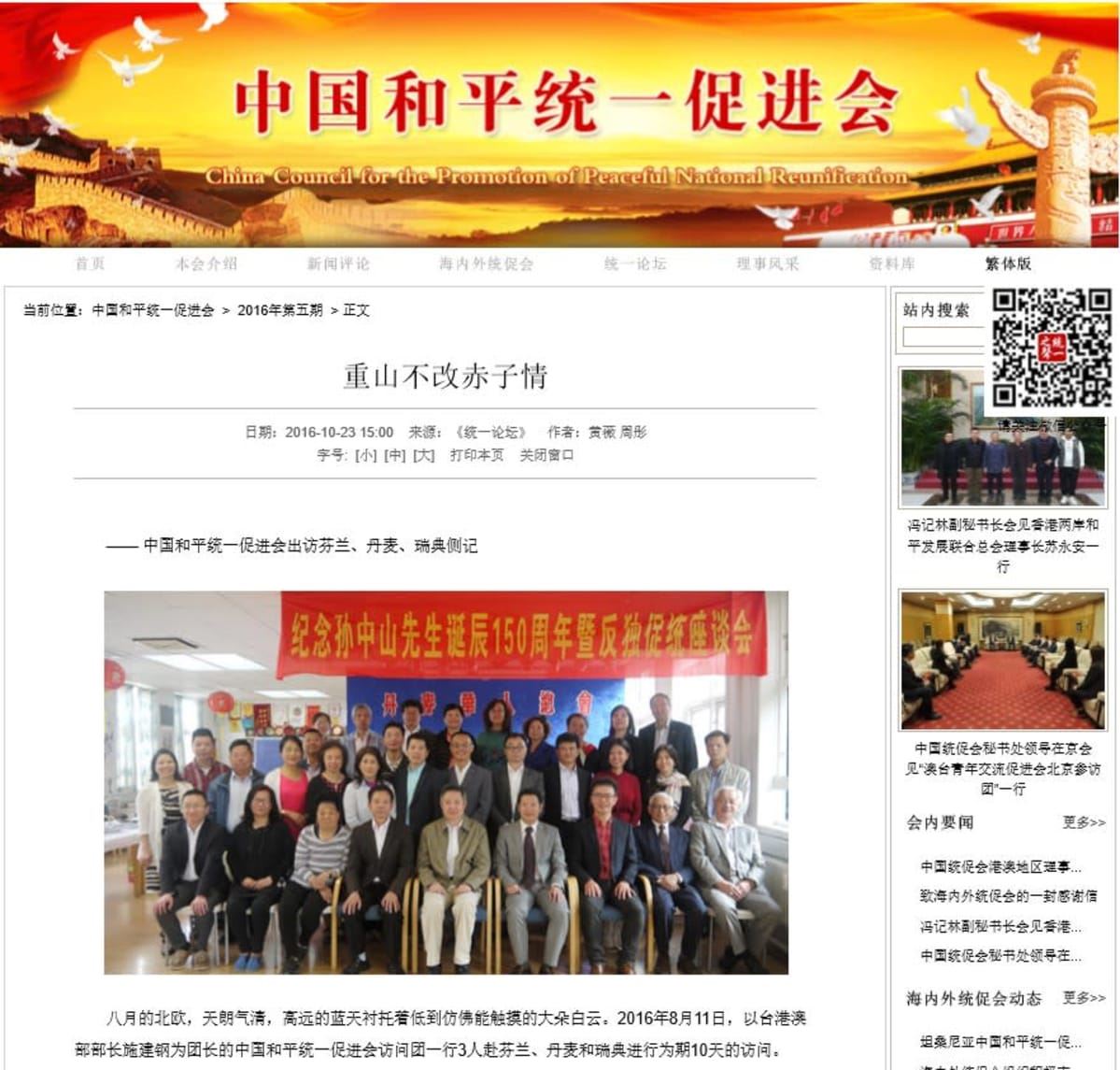 ![]() 图3:中国和平统一促进会 (图片来自YLE) |