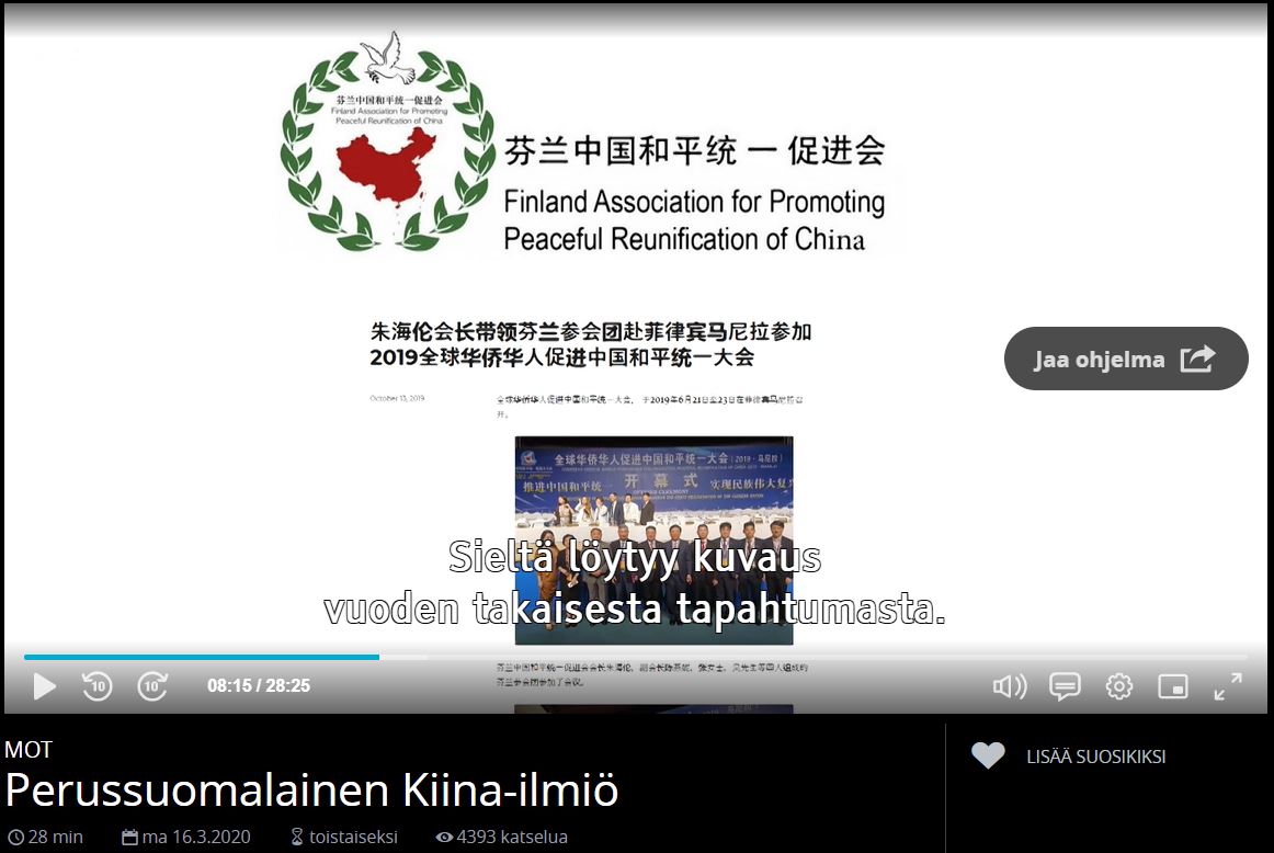 ![]() 图4:芬兰统促会 (图片截图来自YLE调查纪录片“中国影响”) |