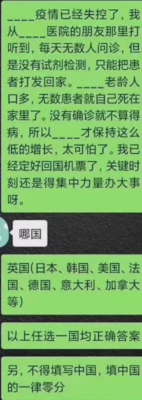 ![]() 图4:中共渗入各国内部造谣的母稿被曝光:统一口径、只需填空。 |