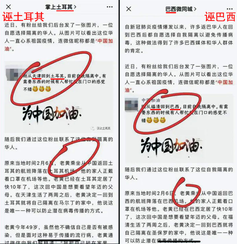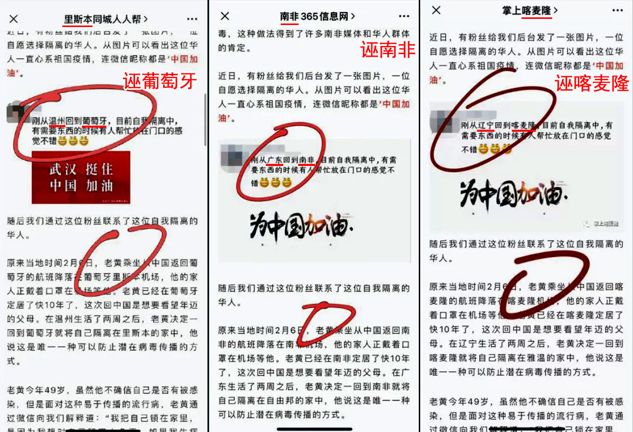 ![]() 图10:海外各国的华人社交平台上,搜索到版本统一的中共造谣文章,地名不同,其它雷同(截图7) |