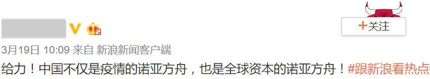 ![]() 图12:网络截图,自己的媒体把中共捧成救世主,既要吸引外资,又洗脱谎言造成疫情失控、祸及全球的罪责。 |