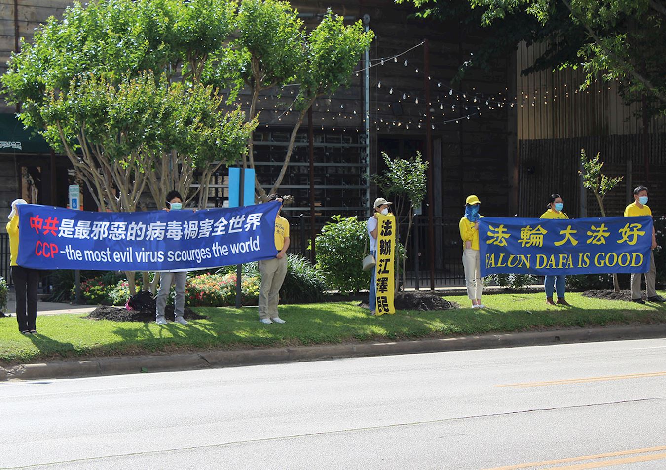 休斯顿中领馆前与中国城是学员经常讲真相的主要地点。真相组学员陈女士介绍,很多有缘人接受资料并且表示感谢,还有一些人能够驻足聆听,当场做了“三:退.”(退出中共党、团、队组织)。还有人表达心愿想要学法轮功。