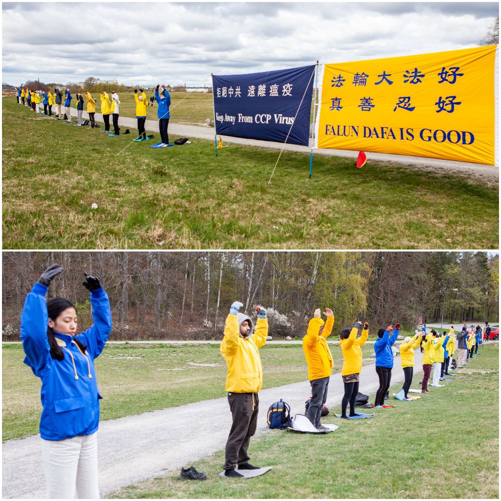 四月二十四日下午,瑞典法轮功学员又聚集在斯德哥尔摩市中心国会大厦(Riksdag)旁的钱币广场(Mynttorget)前,竖起“法轮大法好 真善忍好”、“拒绝中共 远离瘟疫”醒目的横幅、摆上真相展板,在这里继续向人们揭露中共迫害法轮功。特别是向民众讲述中共诬蔑“四二五”和平上访是“围攻中南海”的欺世谎言,同时把中共迫害法轮功已经二十多年来的残忍暴行揭露于众。尽管疫情下外出的人流明显比往年要少,但还是有不少路人站在展板前认真的阅读,不停的询问。
