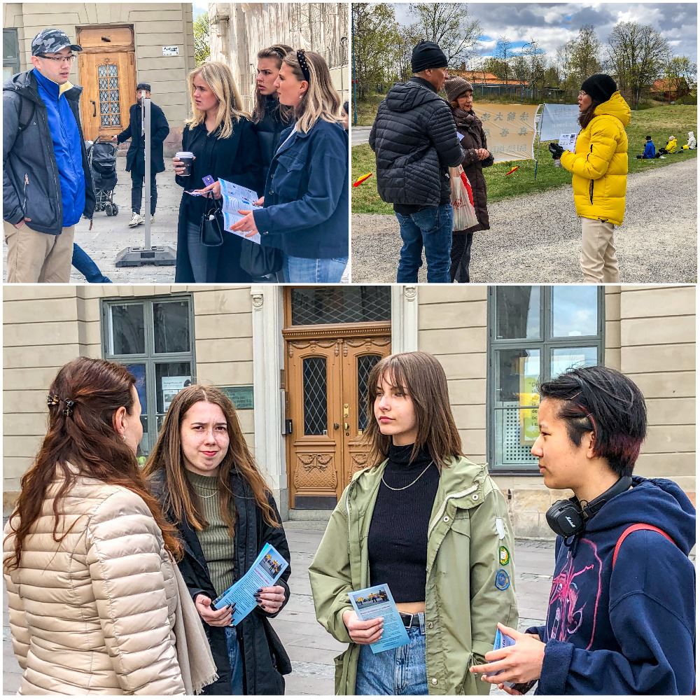 ![]() 图6:瑞典法轮功学员面对面向世人讲述法轮功真相,揭露中共谎言 |