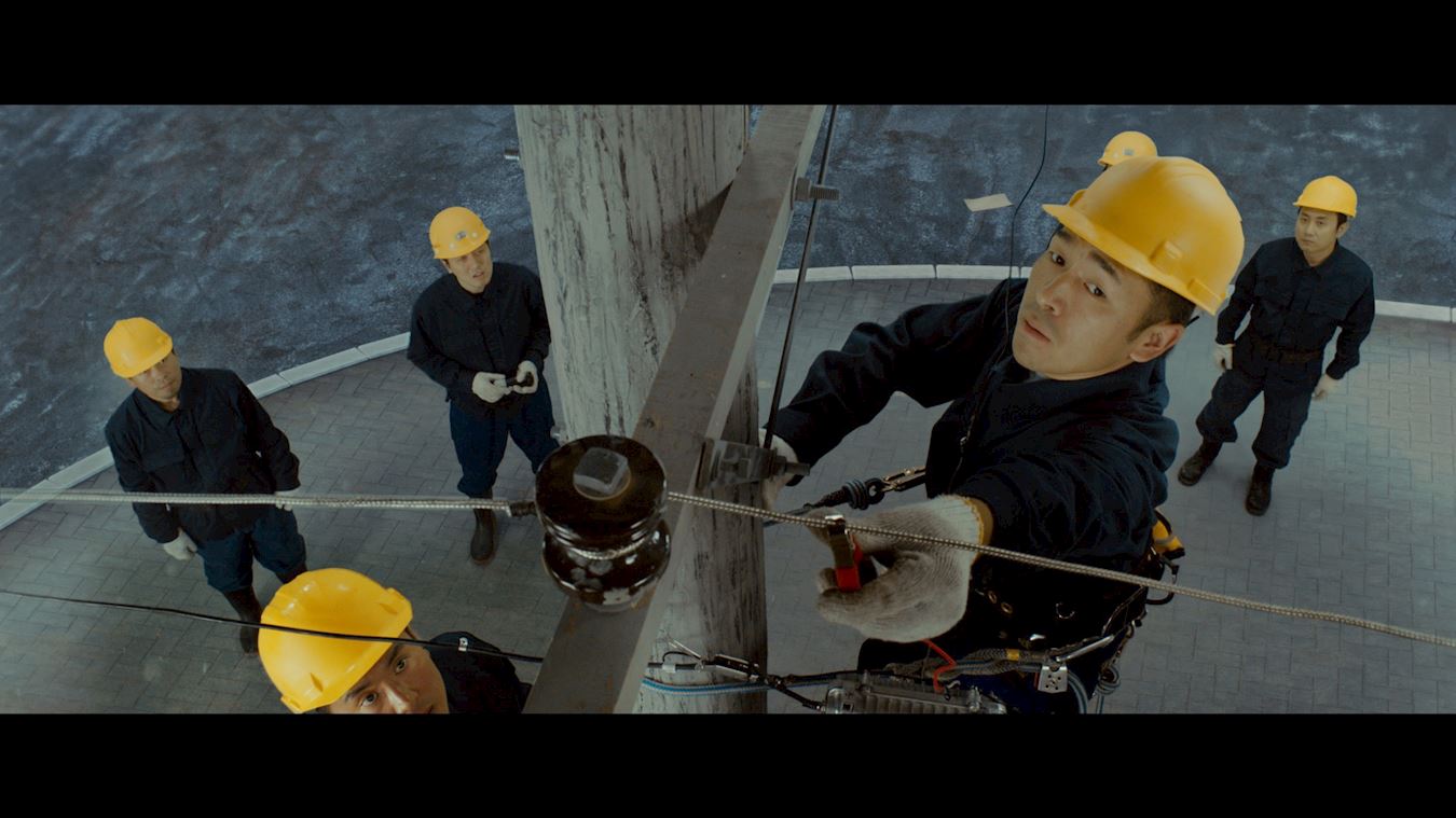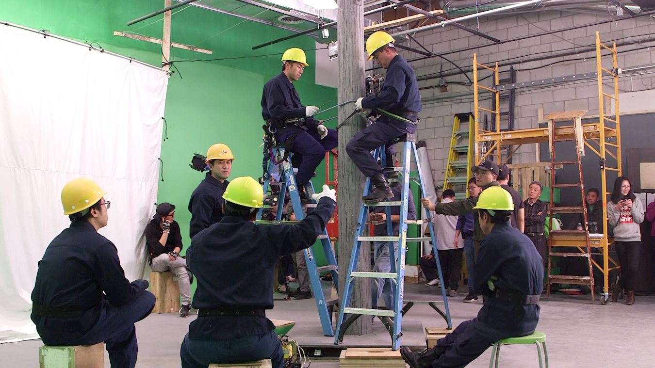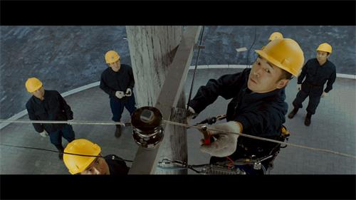 ![]() 图9:“老金”拍摄现场讲解电视插播细节,爬电线杆相关剧情。 |