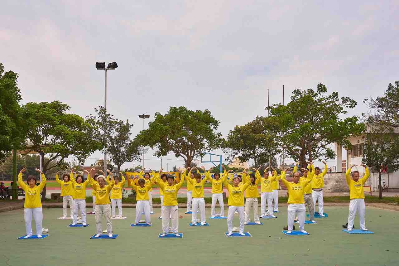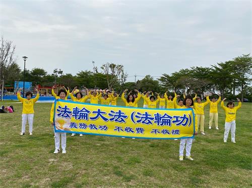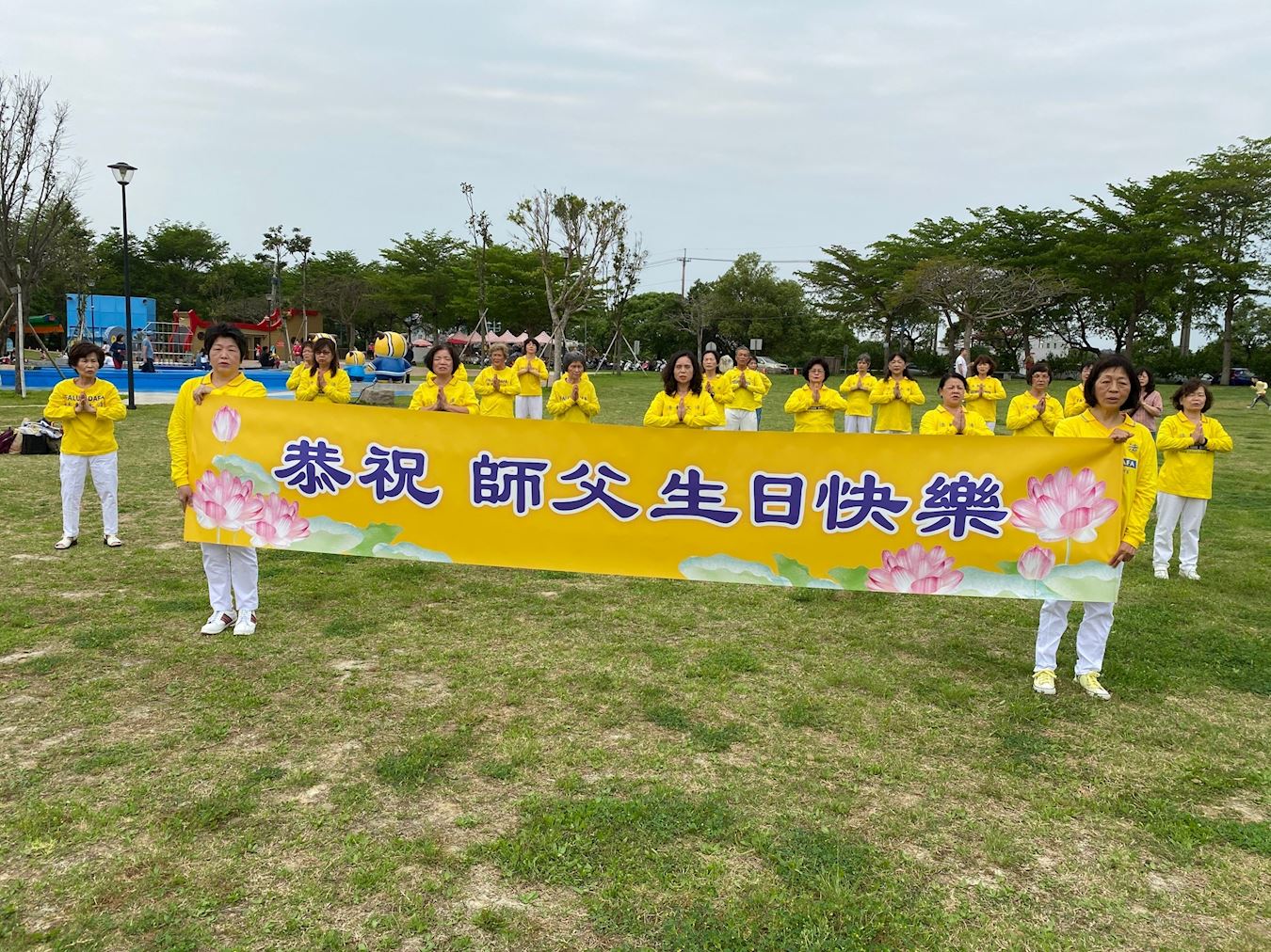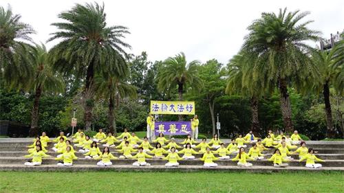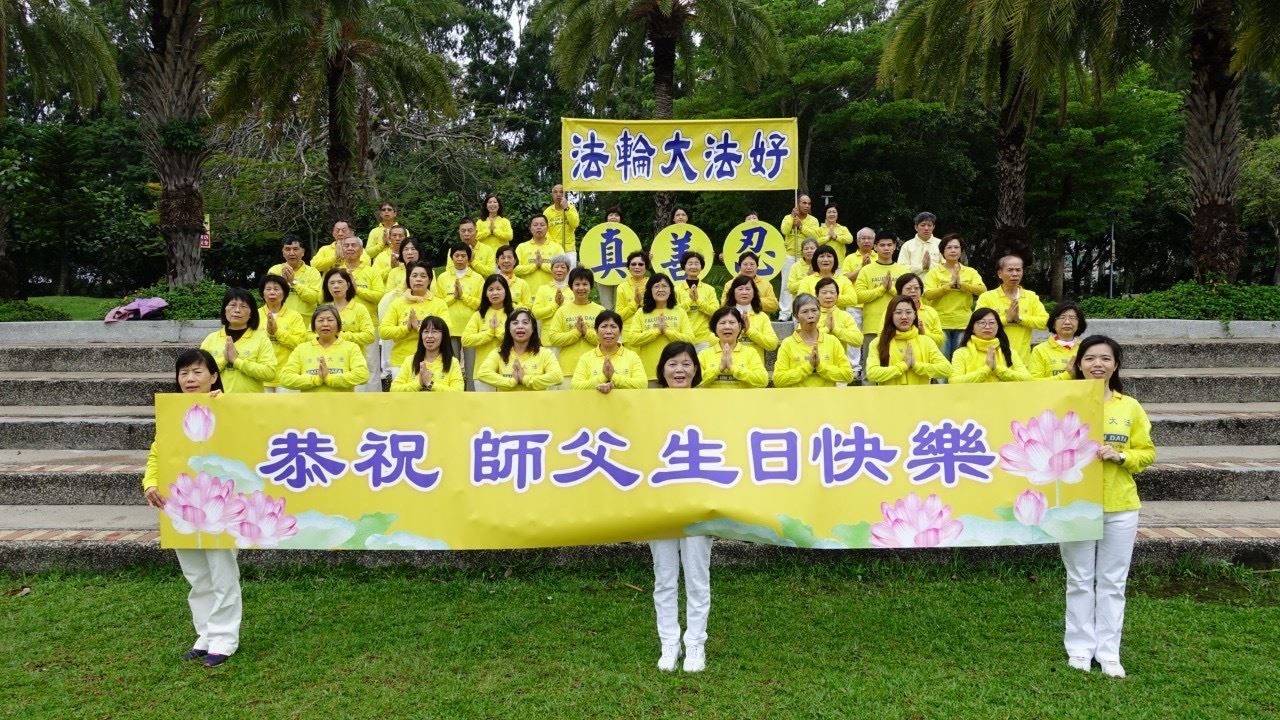 ![]() 图1:台湾苗栗部份法轮功学员在头份运动公园,恭贺法轮功创始人李洪志先生华诞。 |