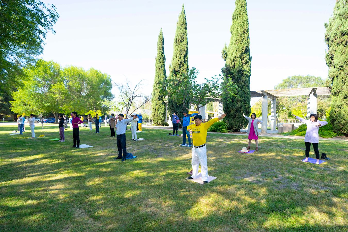 加州采取了居家防疫措施,应对中共病毒。近来加州疫情减缓,五月八日州长宣布扩大开放范围,更多的零售店可以重新营业。到公园做户外活动的人也逐渐增多。学员在举办活动前询问了市府官员,得到的答复是只要保持六英尺社交距离就可以。