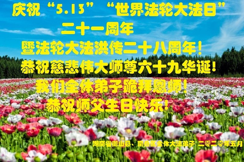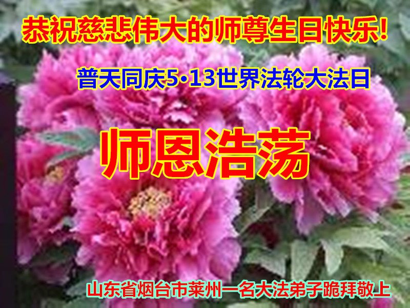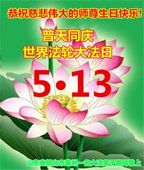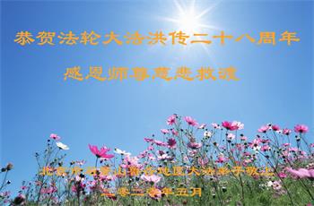 从二十五岁修炼法轮大法,如今我已走过了二十三个年头,这是最让我珍惜的一段时光。虽然经历了风风雨雨,但“真、善、忍”引导着我在人生的路上前行,冲过一个个巨浪险滩。法轮大法赋予我无限的智慧与力量,让我不断扩大着心胸容量,把善的力量传递给周边的人,周围的环境也在悄然发生改变。在513到来之际,千言万语也无法表达弟子对师父的感恩,谢谢师父!法轮大法好!
