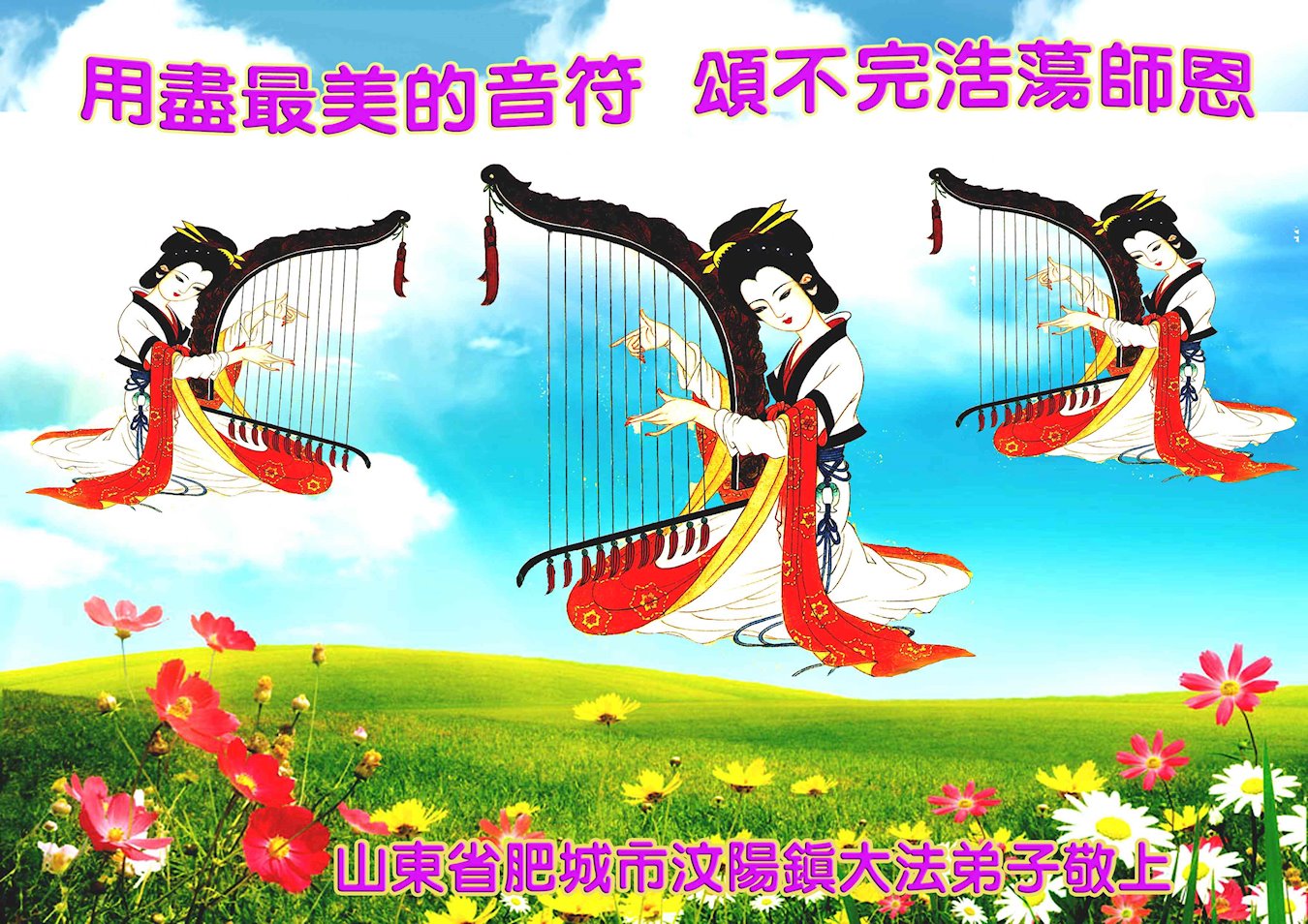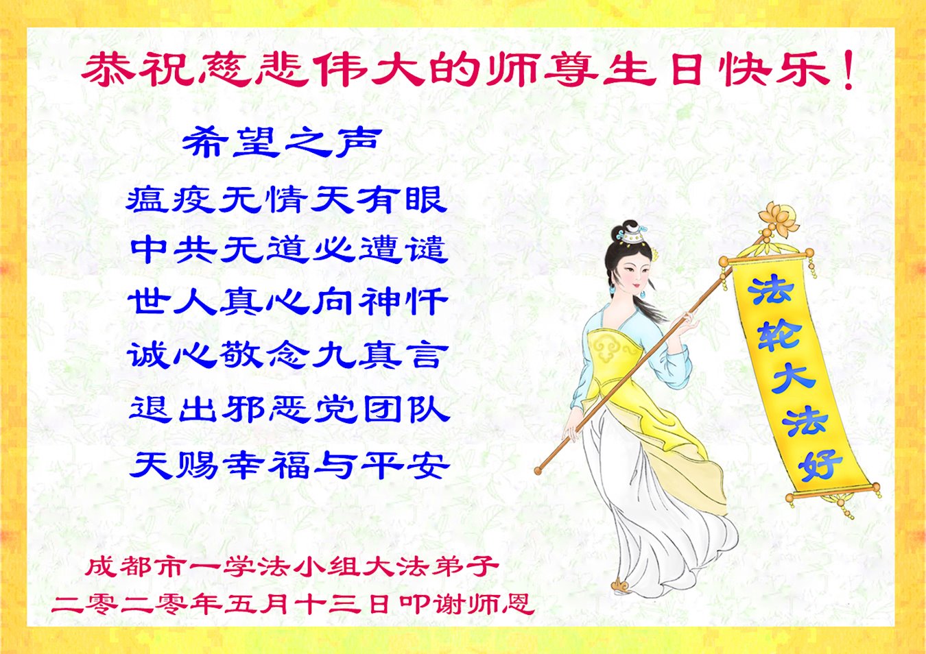 以前我所有的一切不符合大法的言行声明全部作废。听大法师父的话,按照真、善、忍去做。
