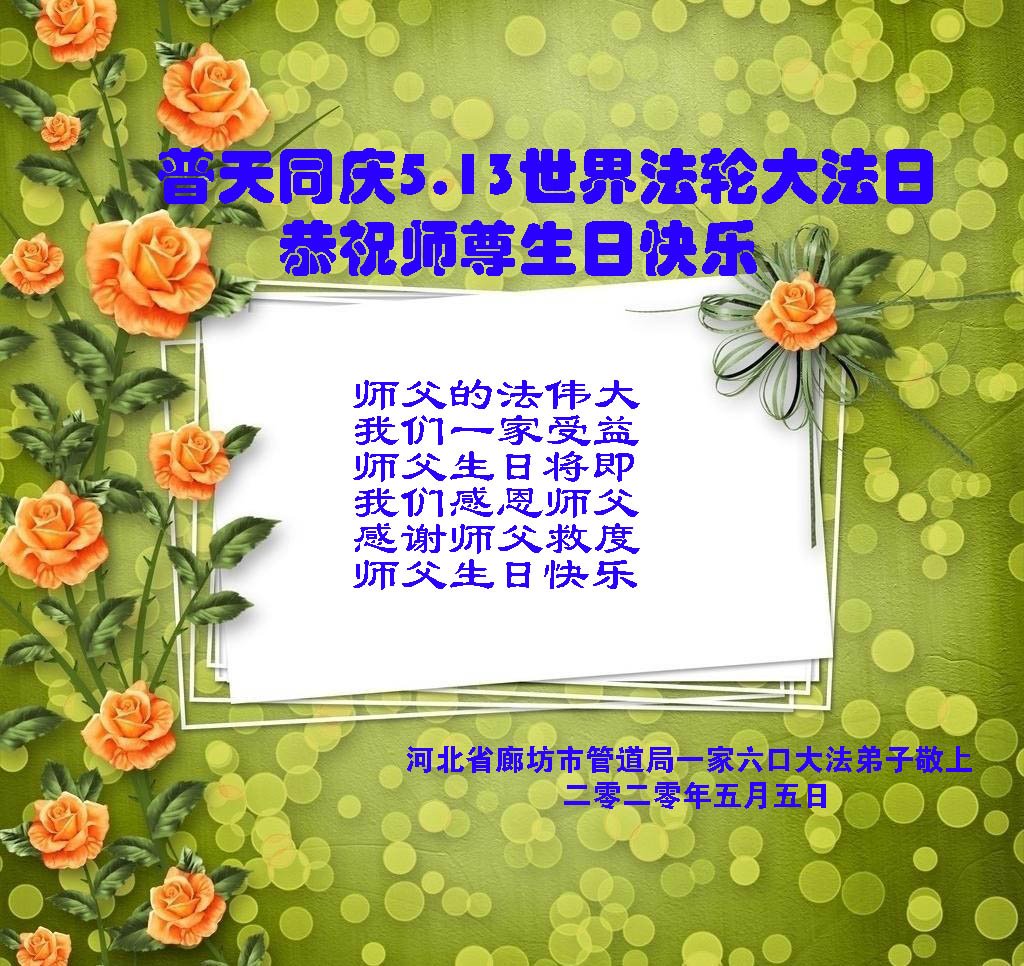 二十六年前,我们差点家破人亡,现在,早已有了第三代。我的父母都已八十多岁了,可以说是健康长寿,全家人互敬互爱、互谦互让,是个美满的大家庭。我的大侄女常常自豪的说:“我们家最幸福了!”这一切的幸福都是大法赐予的。
