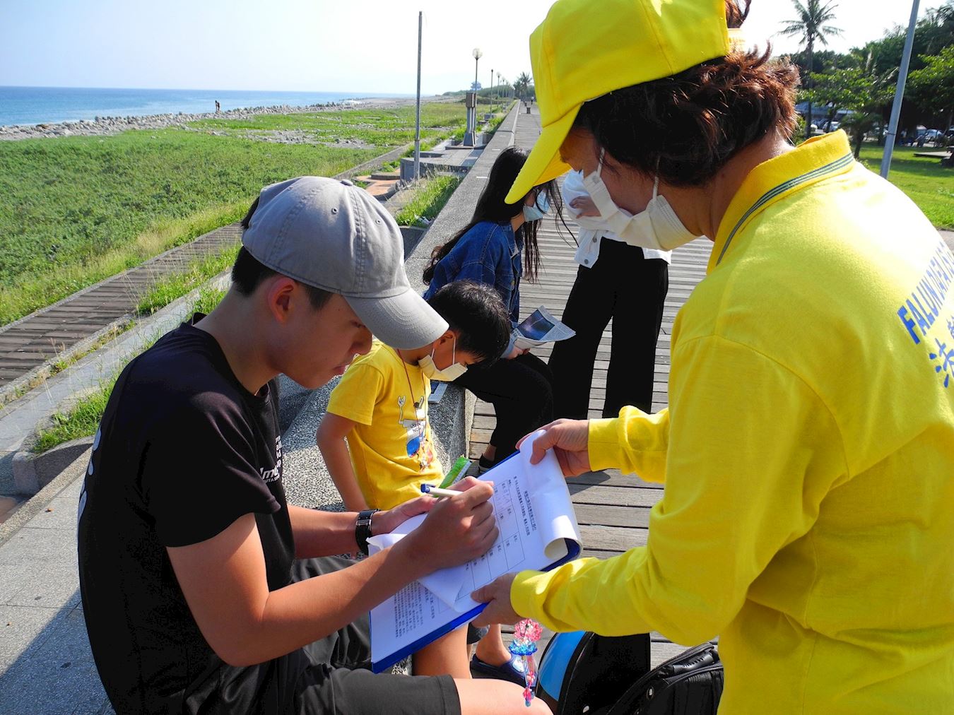 ![]() 图6:台东知本炼功点学员长年持续讲真相。 |