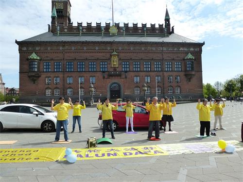 ![]() 图1:丹麦部份大法弟子在首都市政厅广场庆祝世界法轮大法日,暨恭祝师尊华诞 |