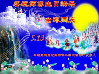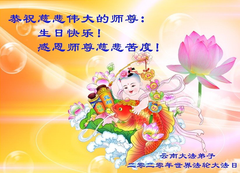 师尊您好!师尊辛苦了!师尊正法洪势滚滚向前推進,法正人间即将展现。红魔气数已尽,大量众生觉醒。我们云南各族大法弟子在最后的时间里,一定不被外界形势所带动,努力做好大法弟子的三件事,向内找,修好自己,讲清真相,多救世人。兑现史前誓约,让师尊放心!