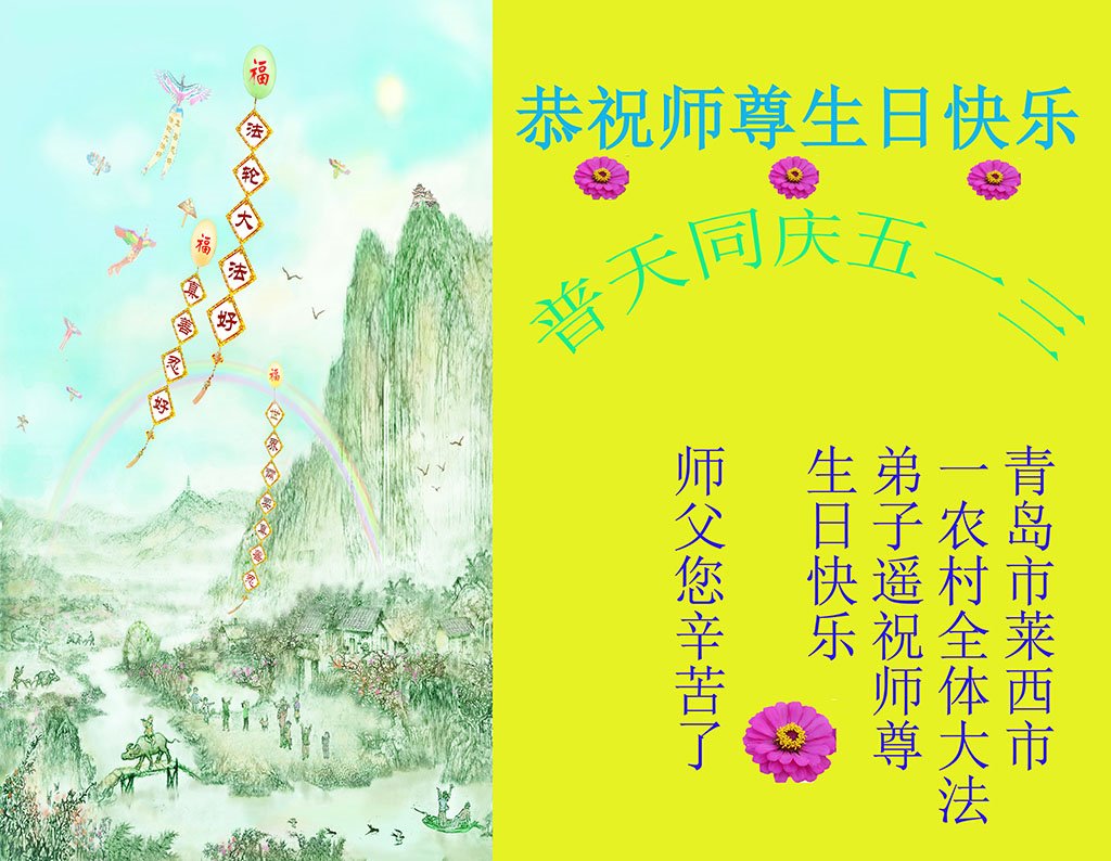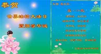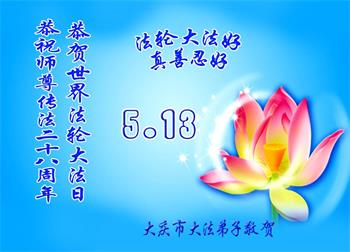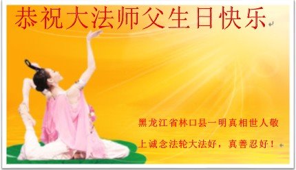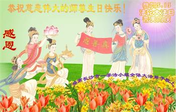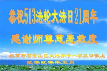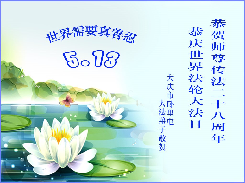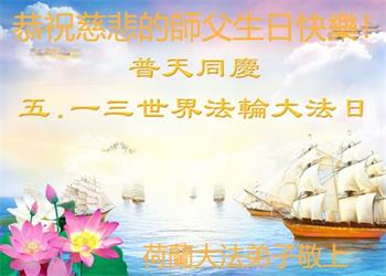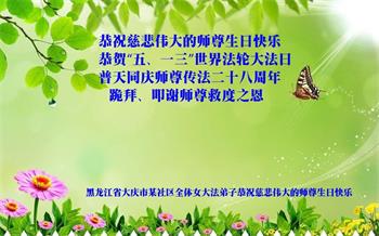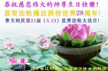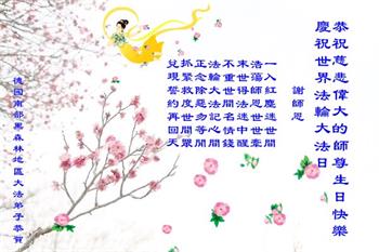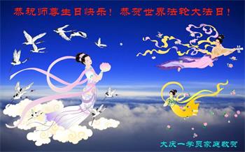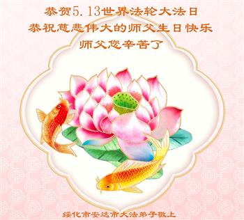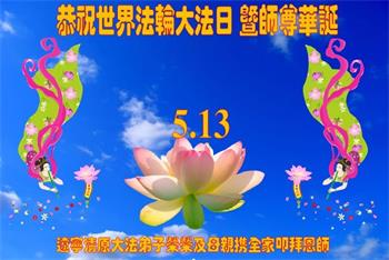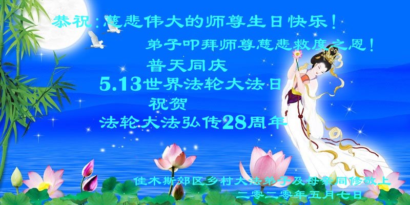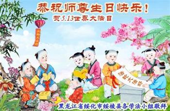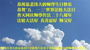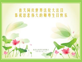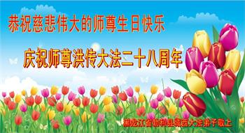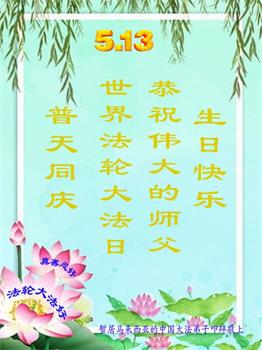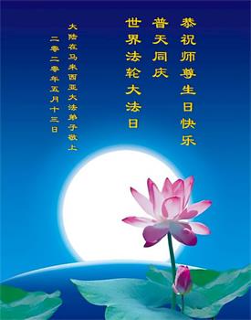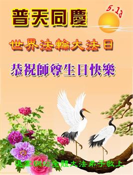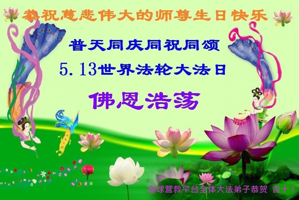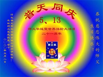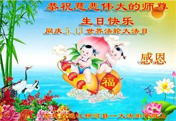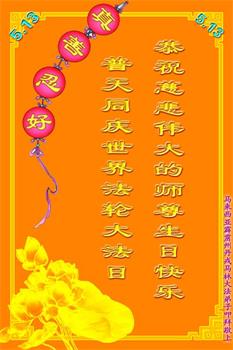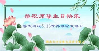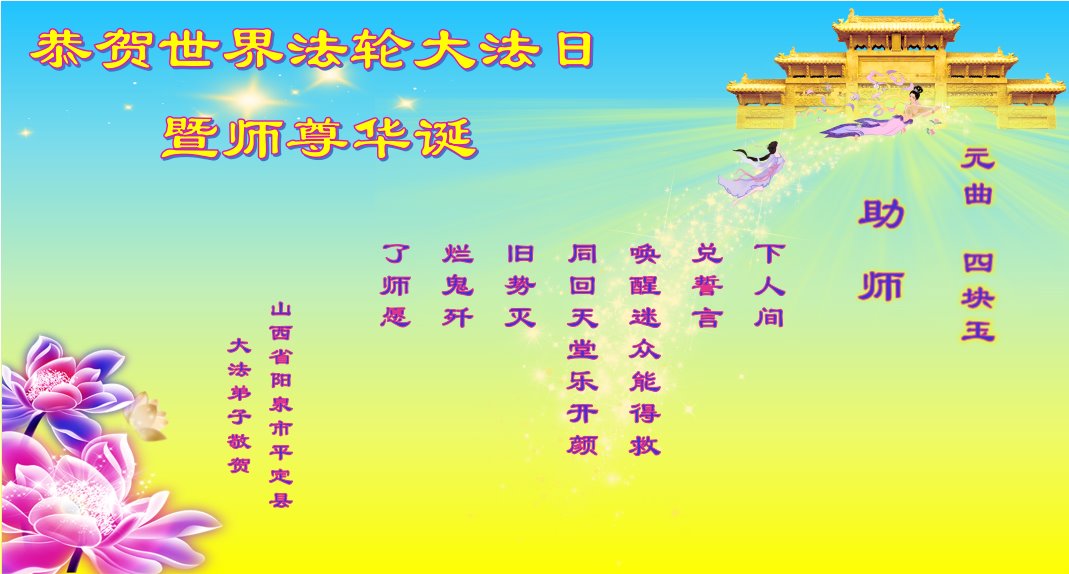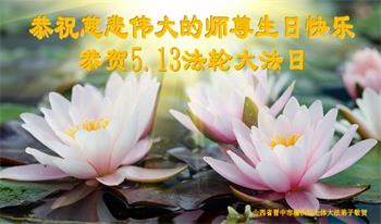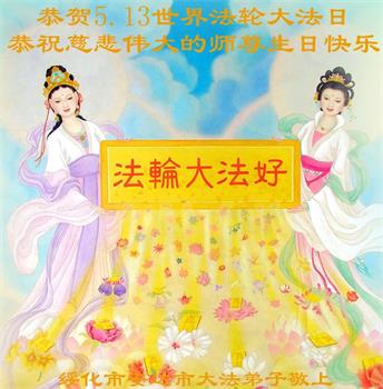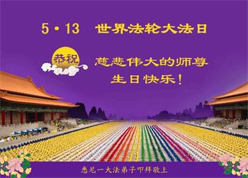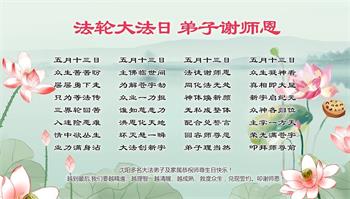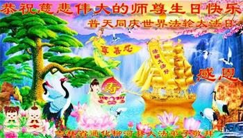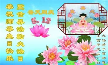 中国大陆30省市大法弟子恭祝师尊华诞快乐!同庆同贺世界法轮大法日!大法弟子们表示:我们是走在神路上的大法徒,要以慈悲和正念向世人讲明真相,加倍珍惜这万古机缘!