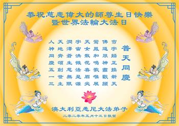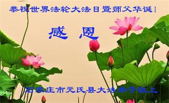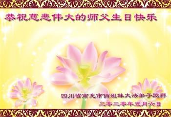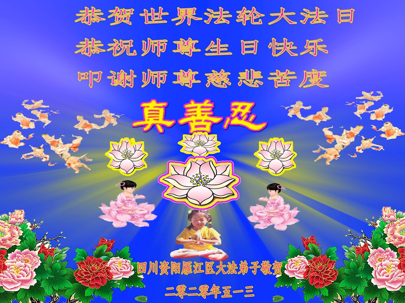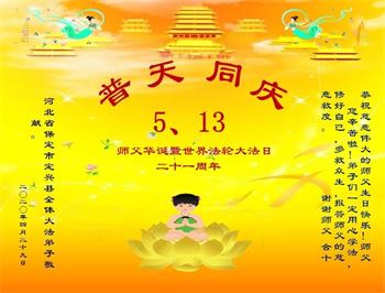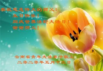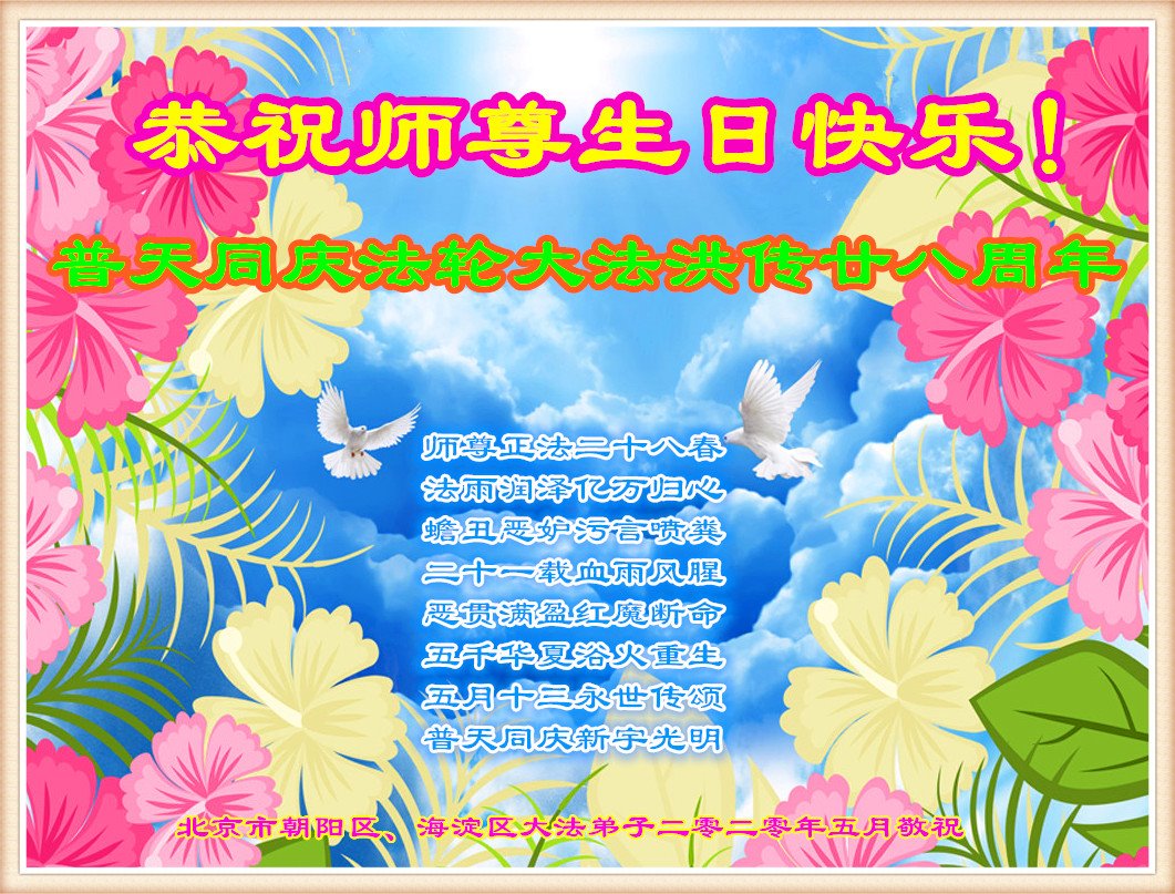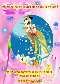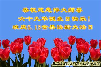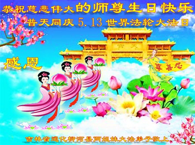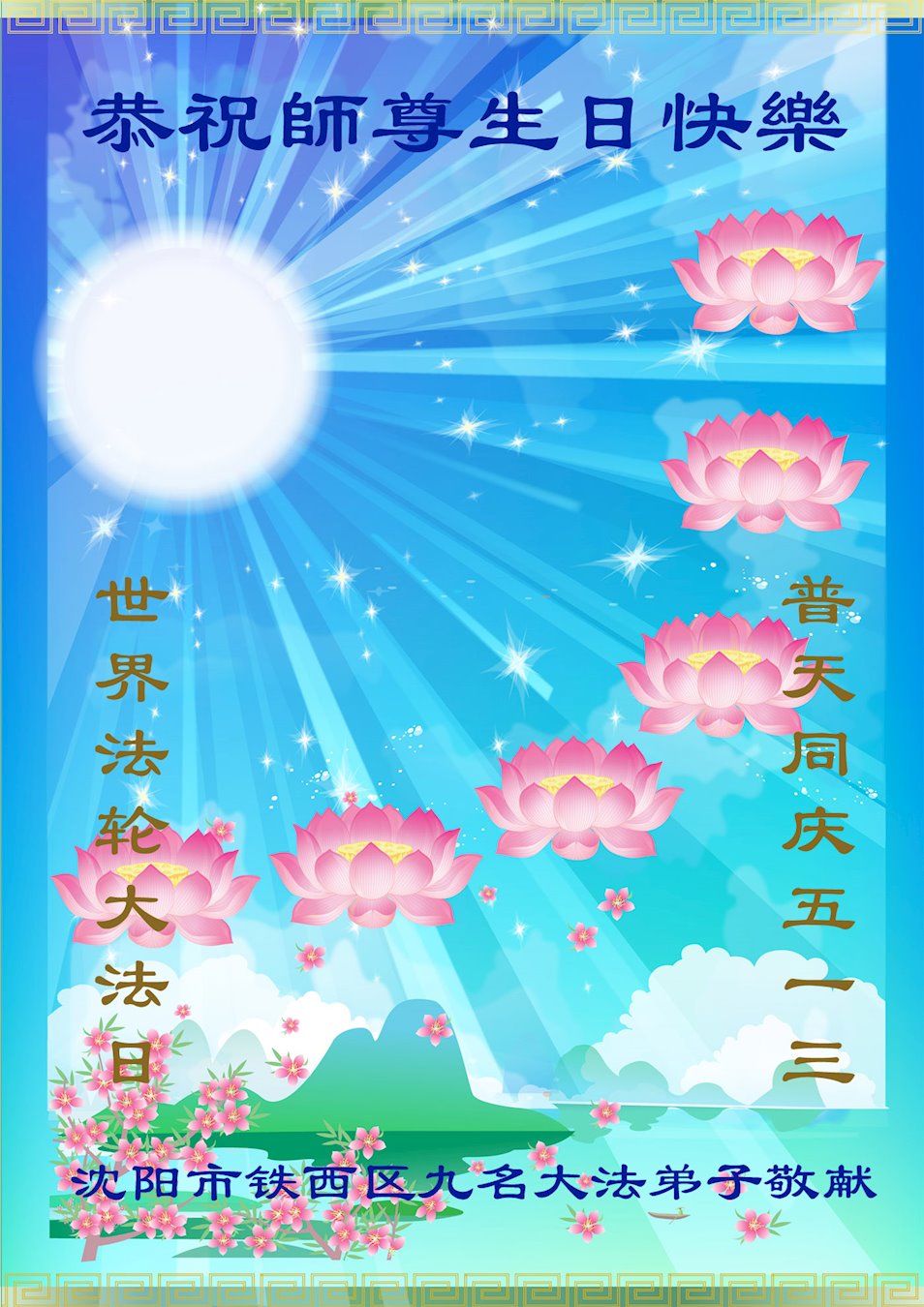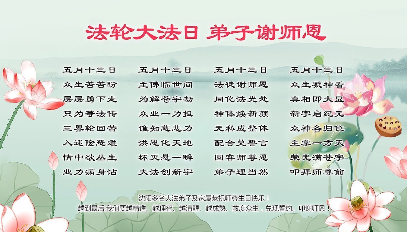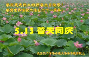 中国大陆30省市大法弟子恭祝师尊华诞快乐!同庆同贺世界法轮大法日!大法弟子们表示:我们是走在神路上的大法徒,要以慈悲和正念向世人讲明真相,加倍珍惜这万古机缘!