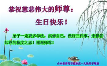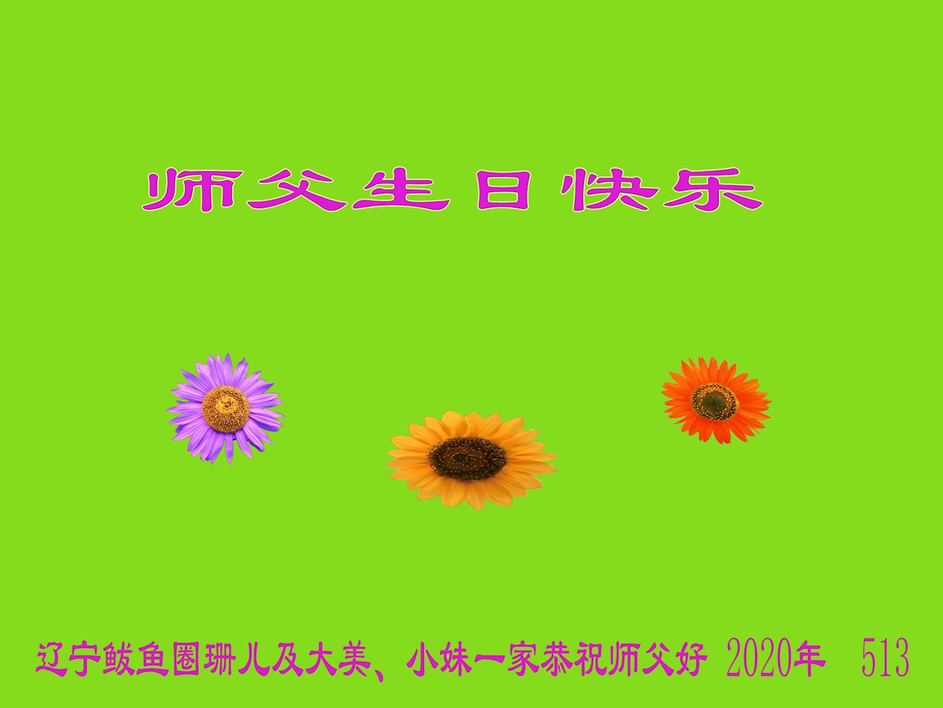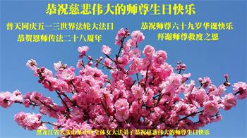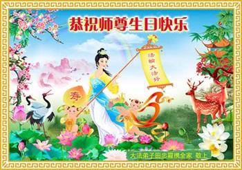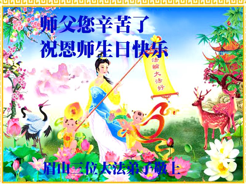 慈悲伟大的师父好!我们姐妹三人家住边塞,隔着大洋高山,向您表达我们最诚挚的敬意,恭贺师尊生日快乐!我们会坚定的跟随师父,走好助师正法的修炼路。