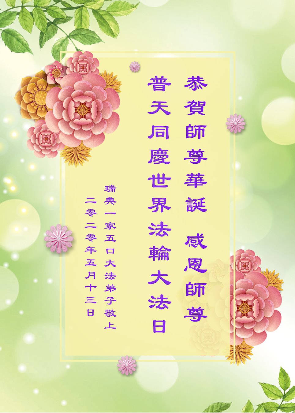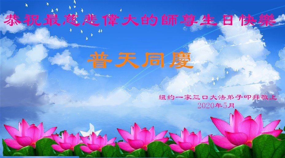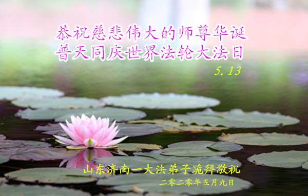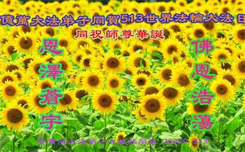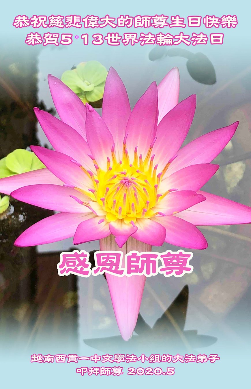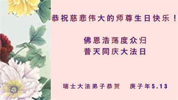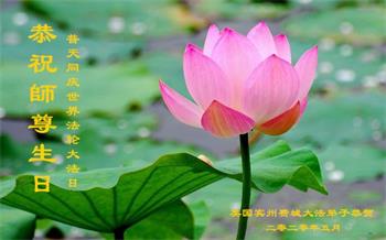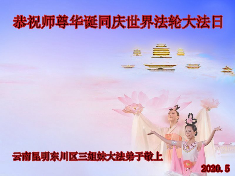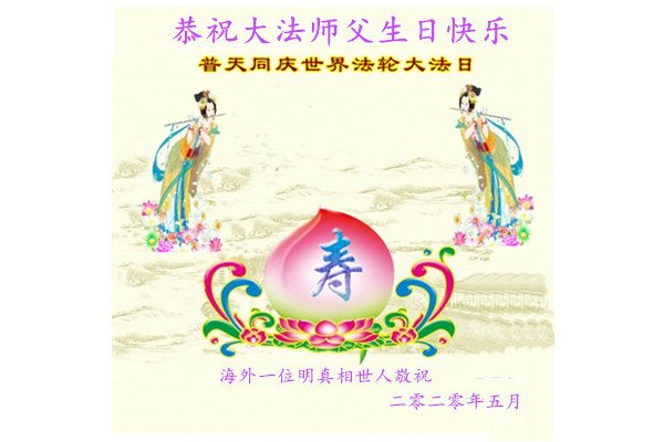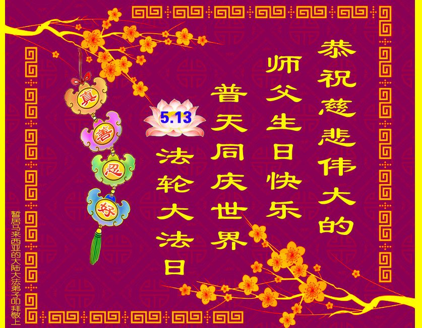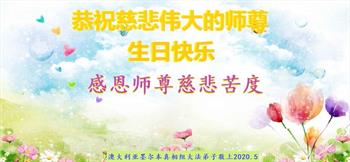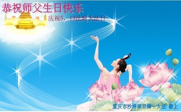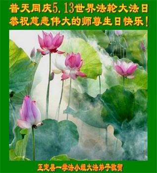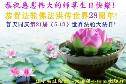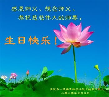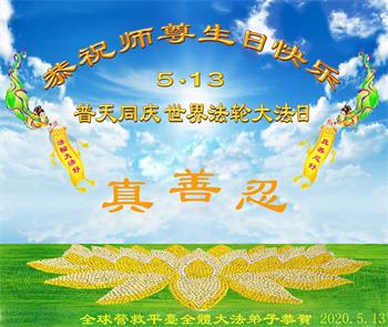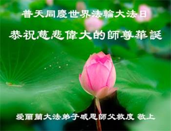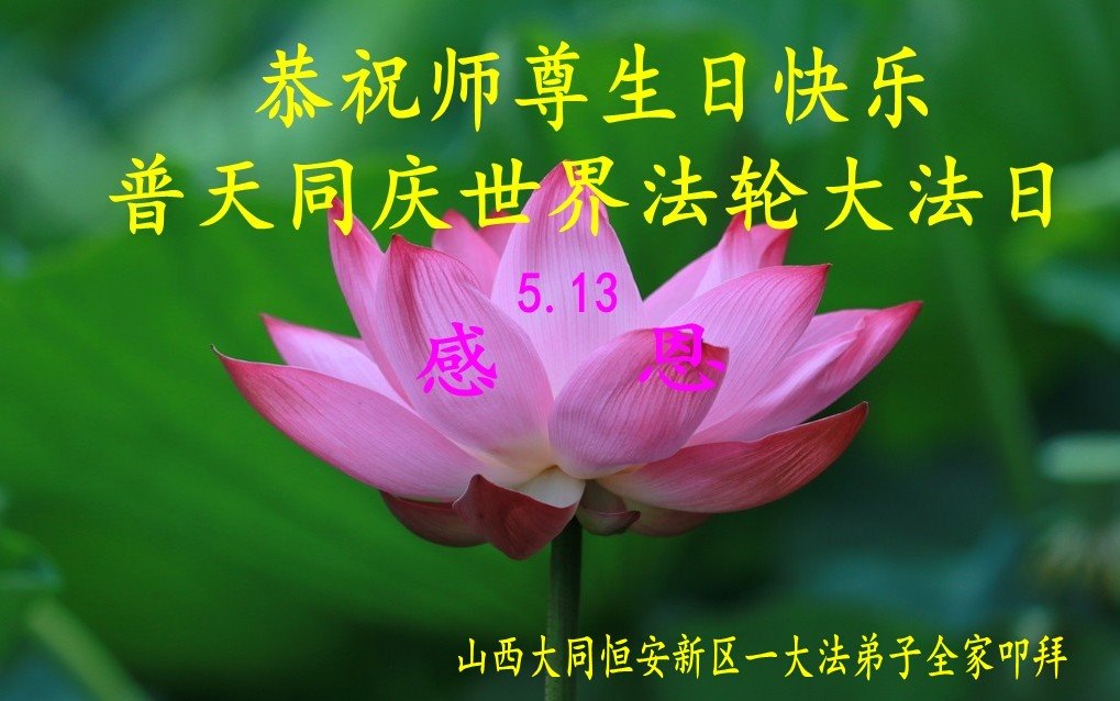 在2020年“5.13”世界法轮大法日这个殊胜的日子,我由衷地感恩师尊!感恩师尊给了我第二次生命,感恩师尊给了千千万万人第二次生命!师父说:“我洪传即是普度”(《精進要旨》〈拜师〉)。但是谁又能体会到这句话的真正涵义?普度背后的承受;普度背后的付出;普度背后的无量慈悲,都无法用人类的语言去描述。感恩师尊传出这么美好的大法,给了十恶毒世中的世人一次走向希望和光明的机会!再一次恭祝师尊生日快乐!