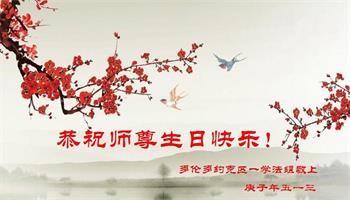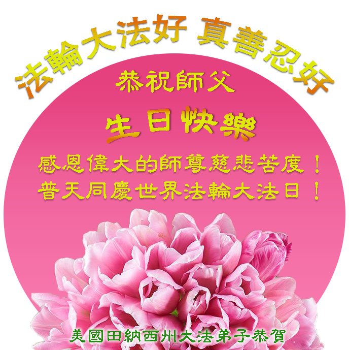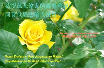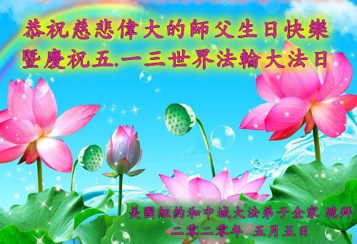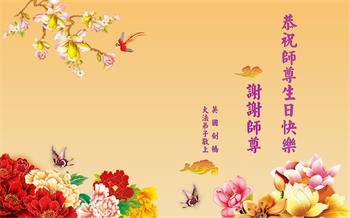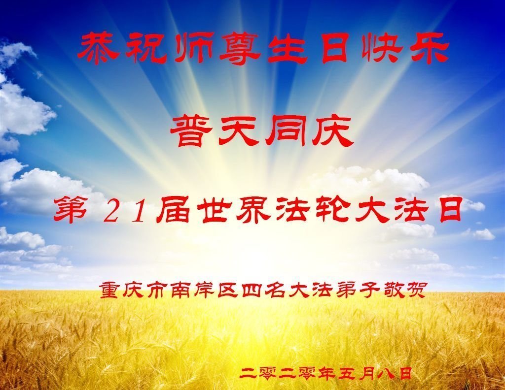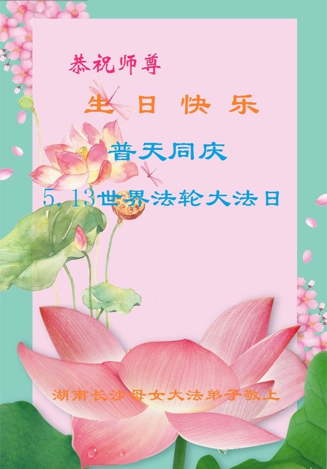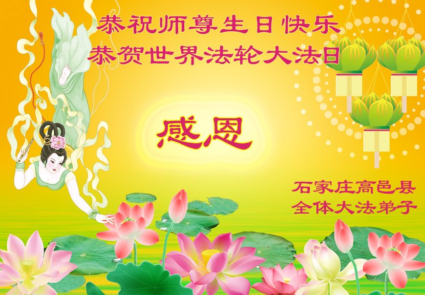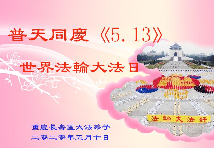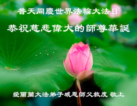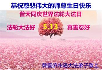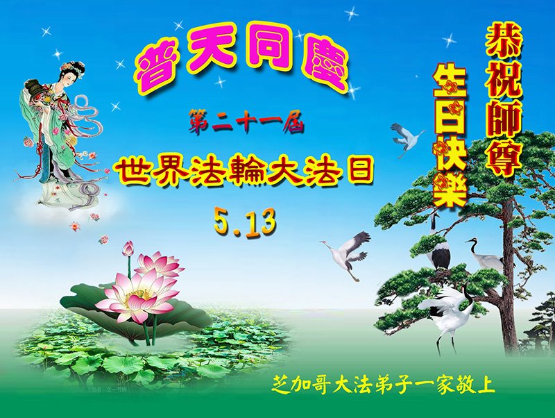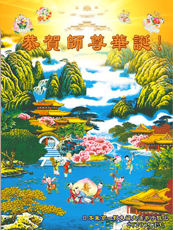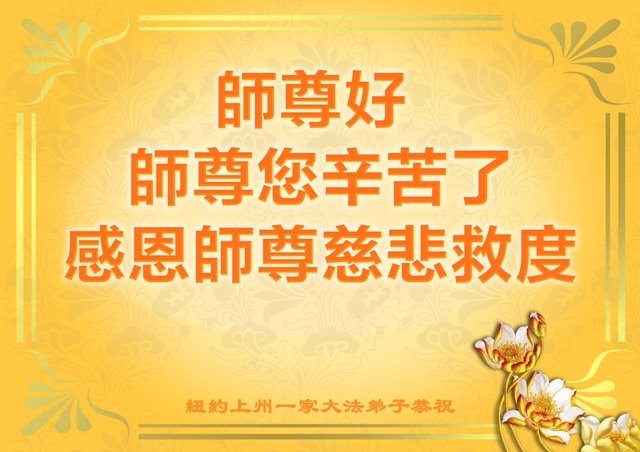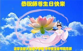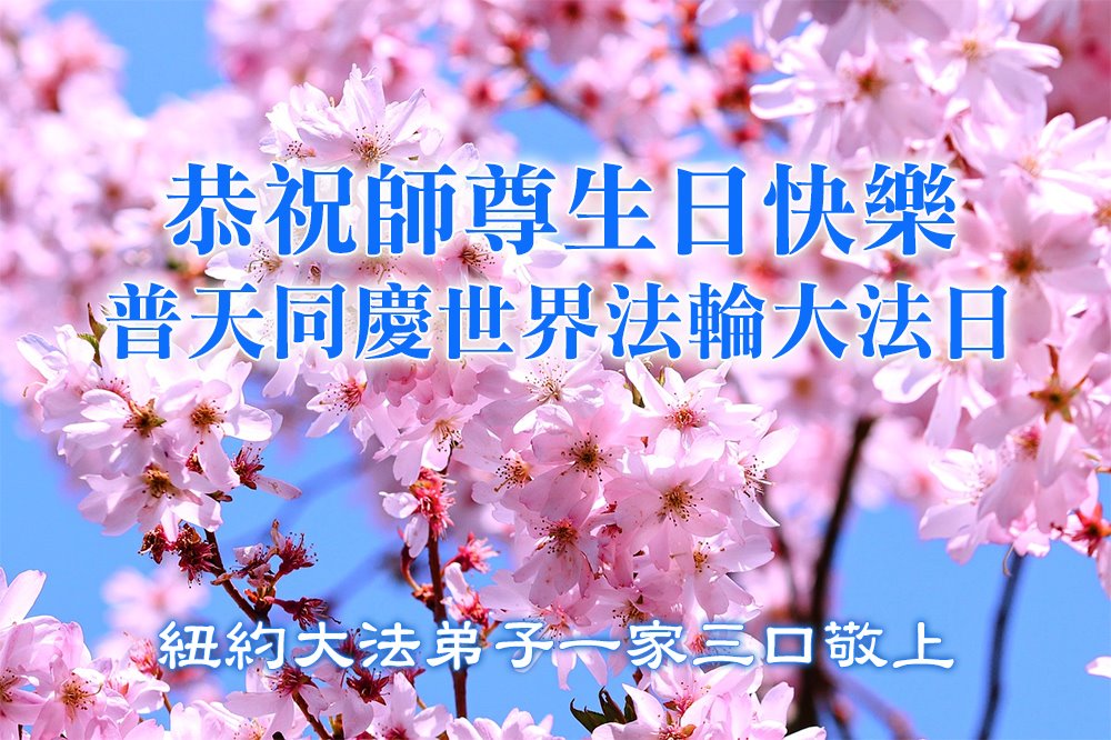 在2020年“5.13”世界法轮大法日这个殊胜的日子,我由衷地感恩师尊!感恩师尊给了我第二次生命,感恩师尊给了千千万万人第二次生命!师父说:“我洪传即是普度”(《精進要旨》〈拜师〉)。但是谁又能体会到这句话的真正涵义?普度背后的承受;普度背后的付出;普度背后的无量慈悲,都无法用人类的语言去描述。感恩师尊传出这么美好的大法,给了十恶毒世中的世人一次走向希望和光明的机会!再一次恭祝师尊生日快乐!