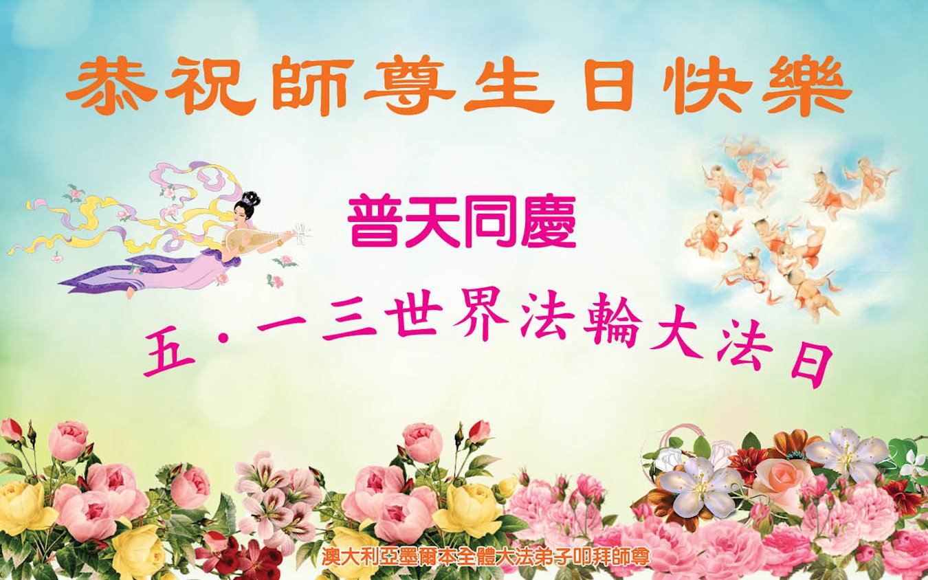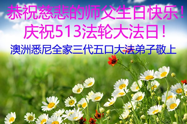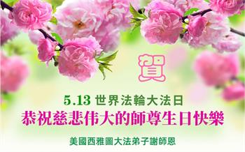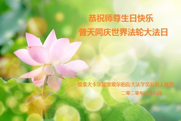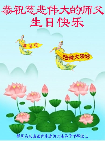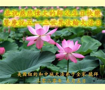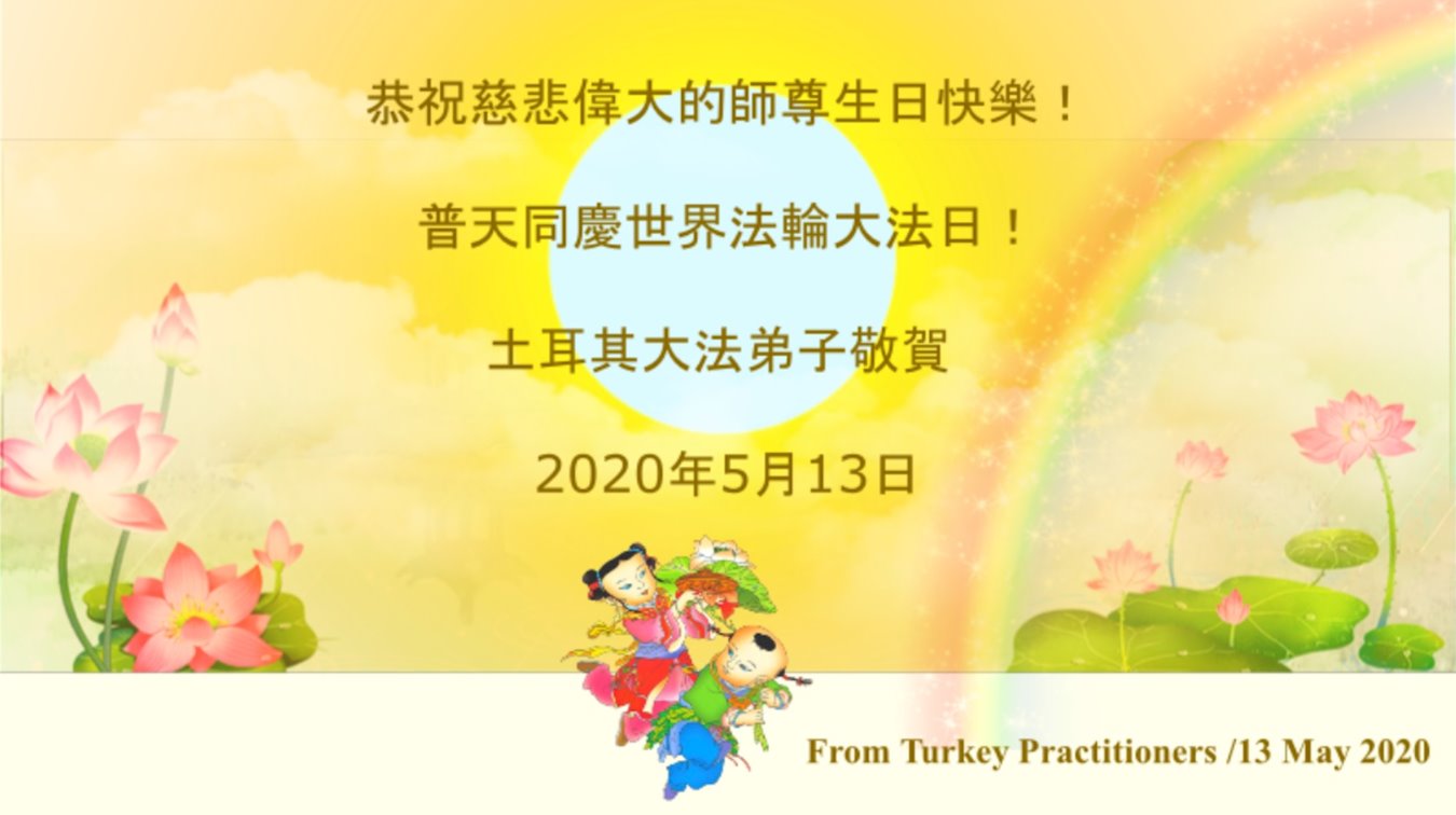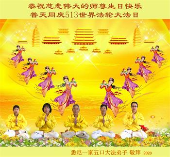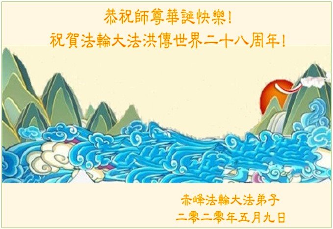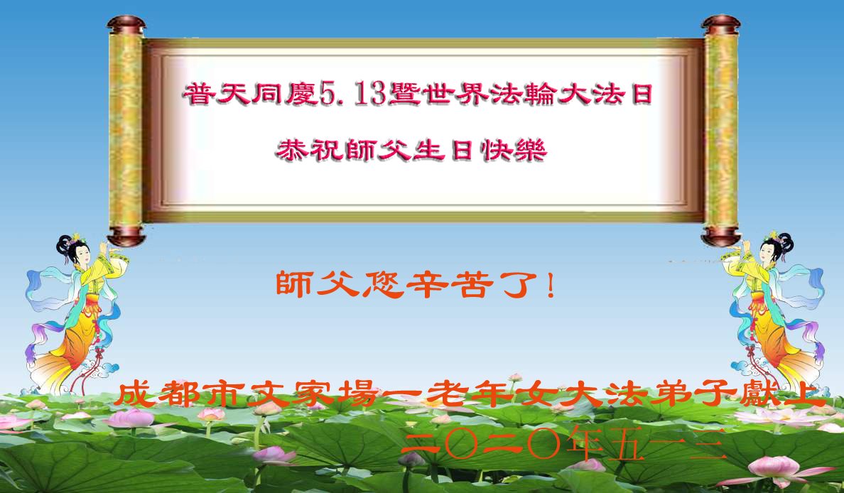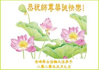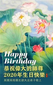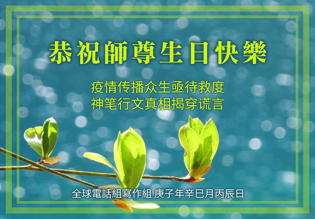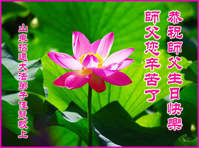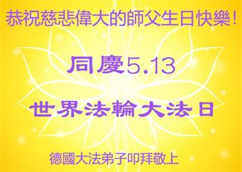 在2020年“5.13”世界法轮大法日这个殊胜的日子,我由衷地感恩师尊!感恩师尊给了我第二次生命,感恩师尊给了千千万万人第二次生命!师父说:“我洪传即是普度”(《精進要旨》〈拜师〉)。但是谁又能体会到这句话的真正涵义?普度背后的承受;普度背后的付出;普度背后的无量慈悲,都无法用人类的语言去描述。感恩师尊传出这么美好的大法,给了十恶毒世中的世人一次走向希望和光明的机会!再一次恭祝师尊生日快乐!