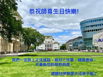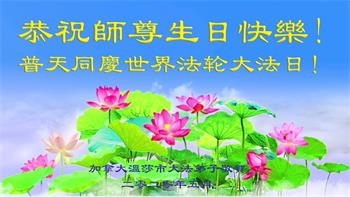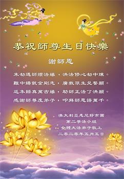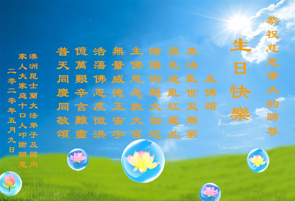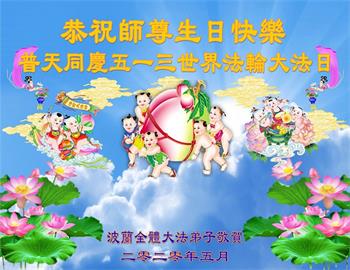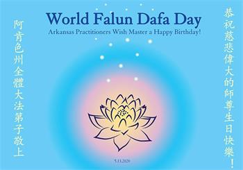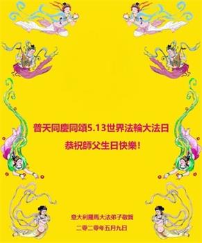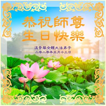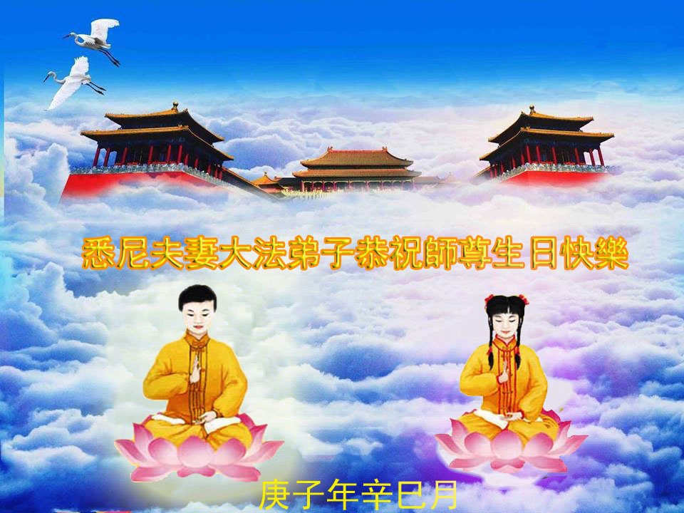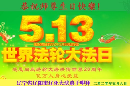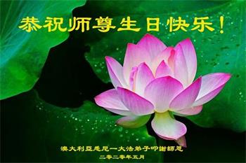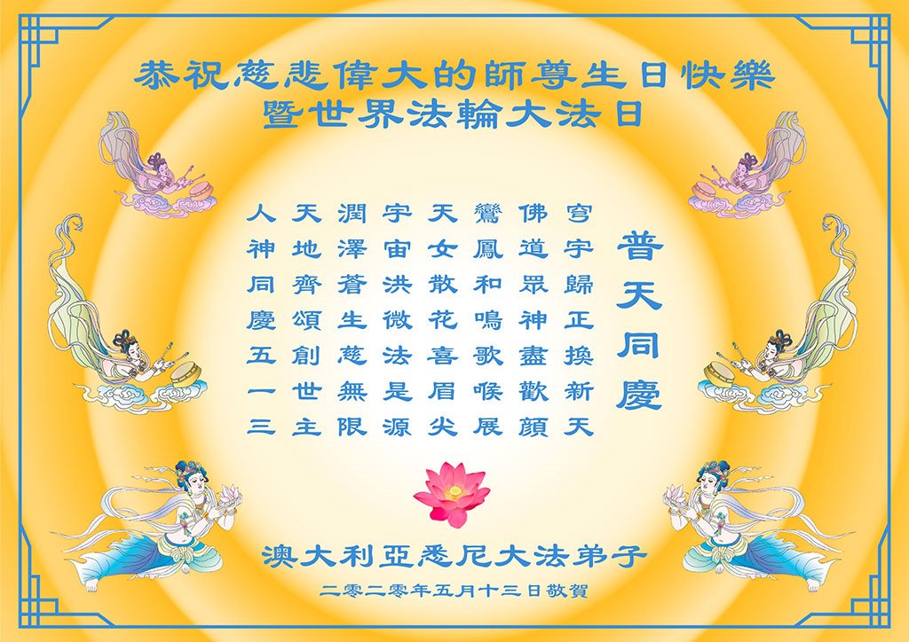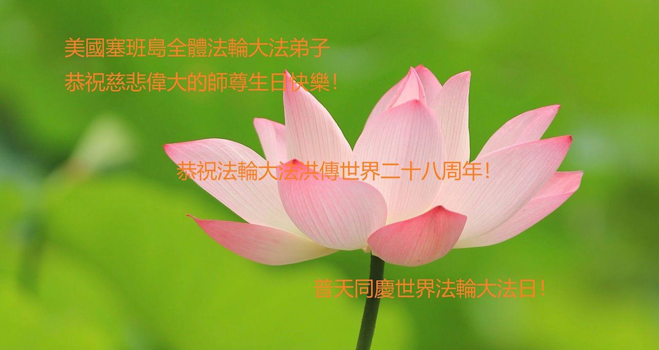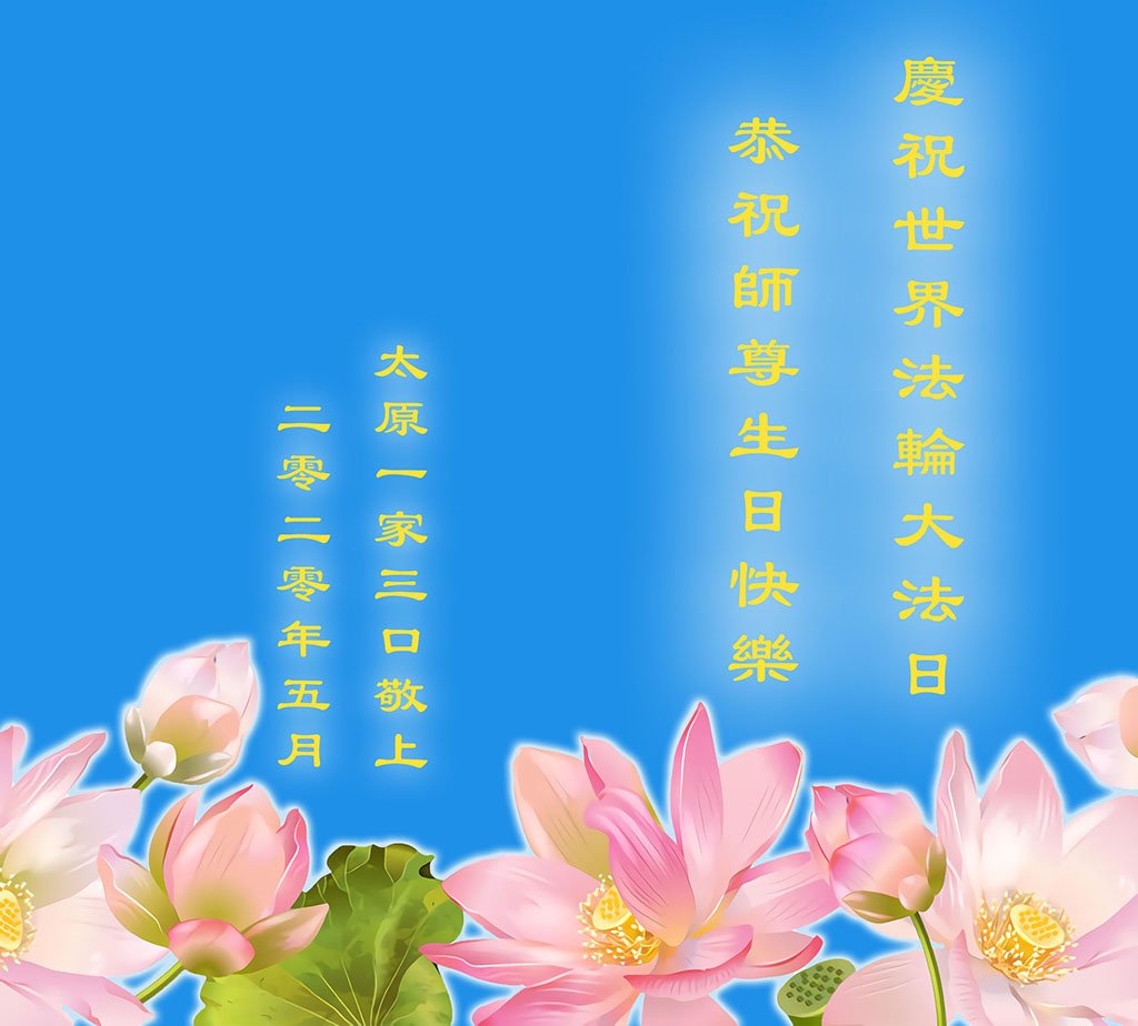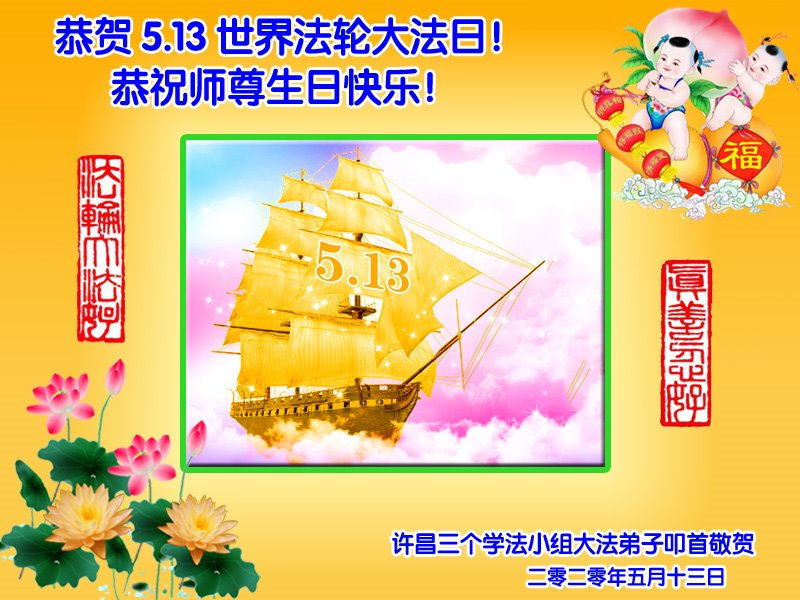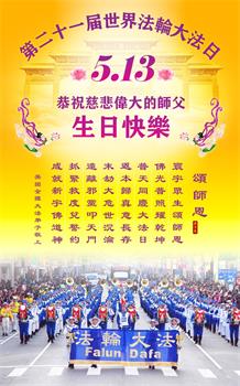 在2020年“5.13”世界法轮大法日这个殊胜的日子,我由衷地感恩师尊!感恩师尊给了我第二次生命,感恩师尊给了千千万万人第二次生命!师父说:“我洪传即是普度”(《精進要旨》〈拜师〉)。但是谁又能体会到这句话的真正涵义?普度背后的承受;普度背后的付出;普度背后的无量慈悲,都无法用人类的语言去描述。感恩师尊传出这么美好的大法,给了十恶毒世中的世人一次走向希望和光明的机会!再一次恭祝师尊生日快乐!