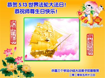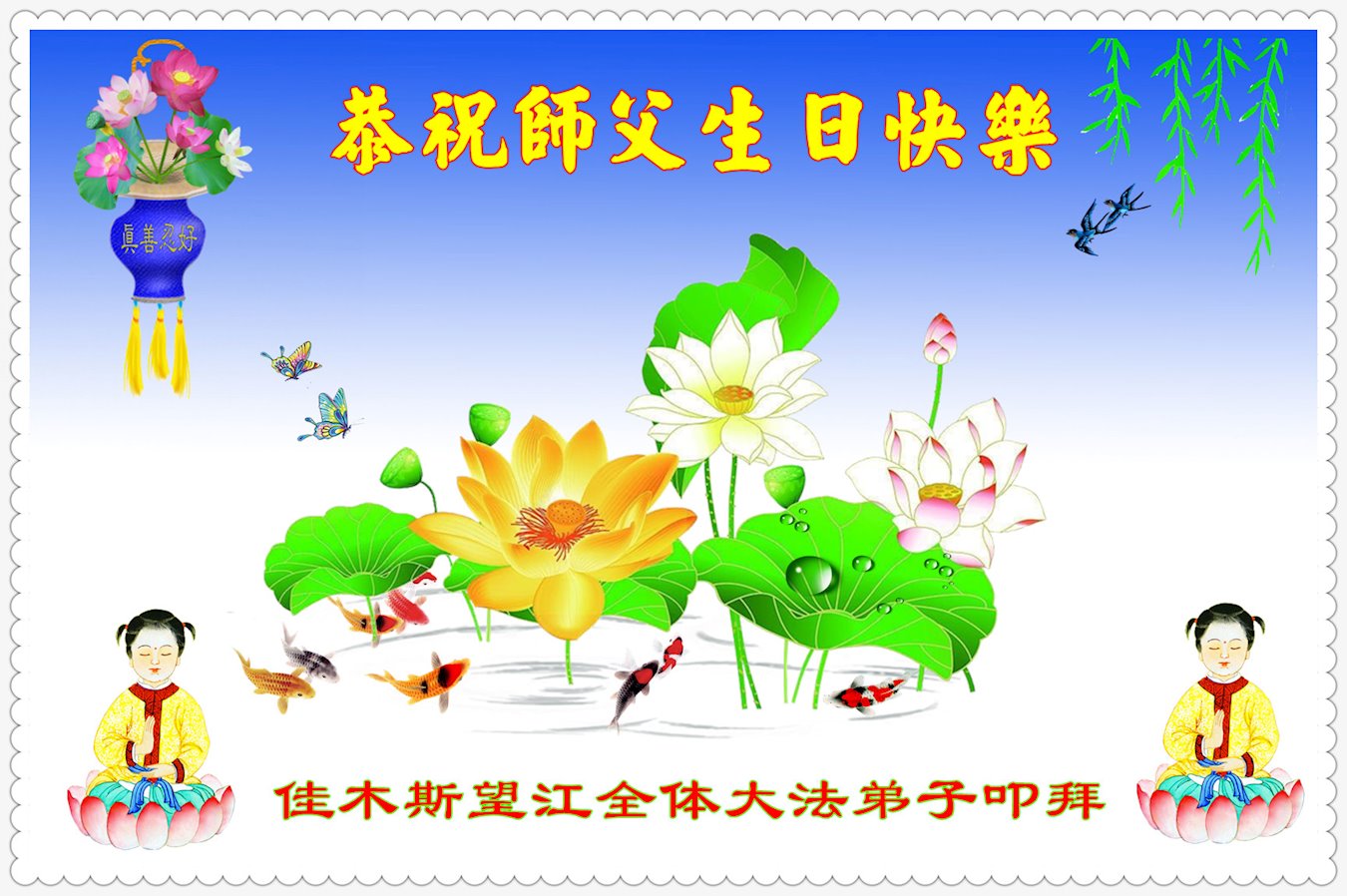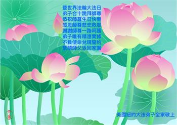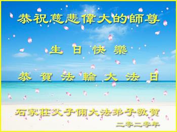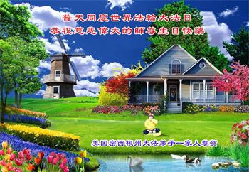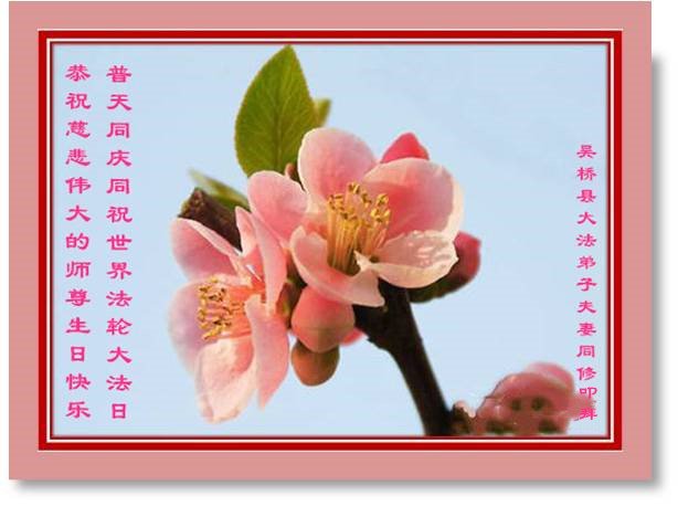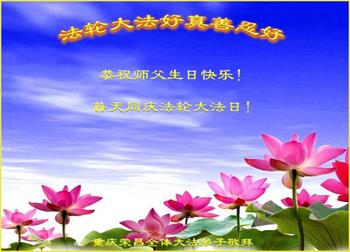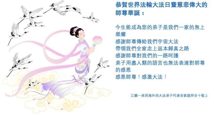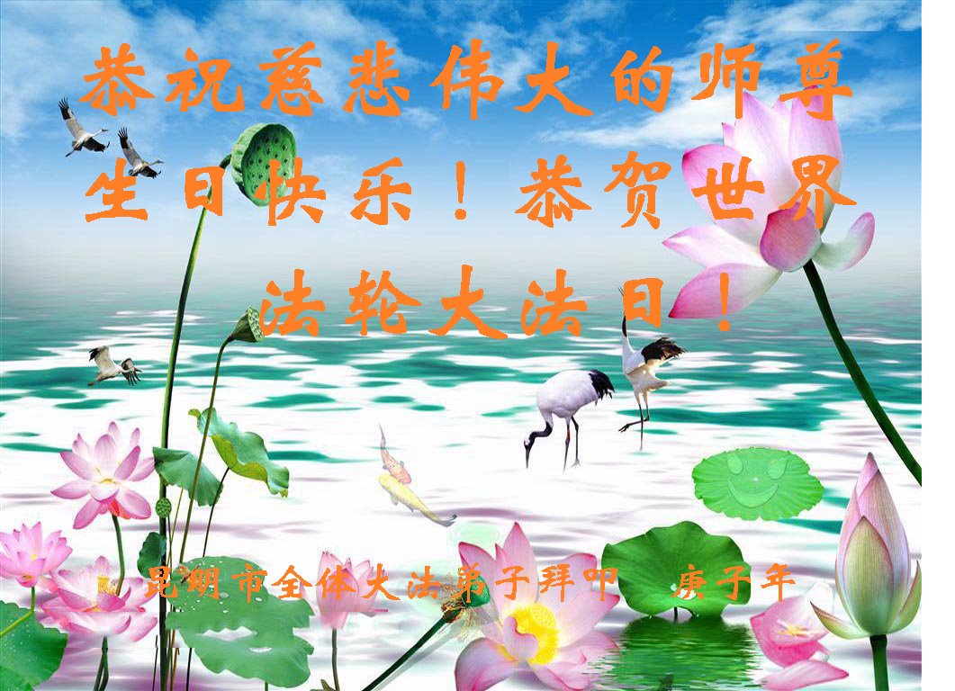 江苏昆山花桥大法弟子代表全家和学法小组全体大法弟子敬上