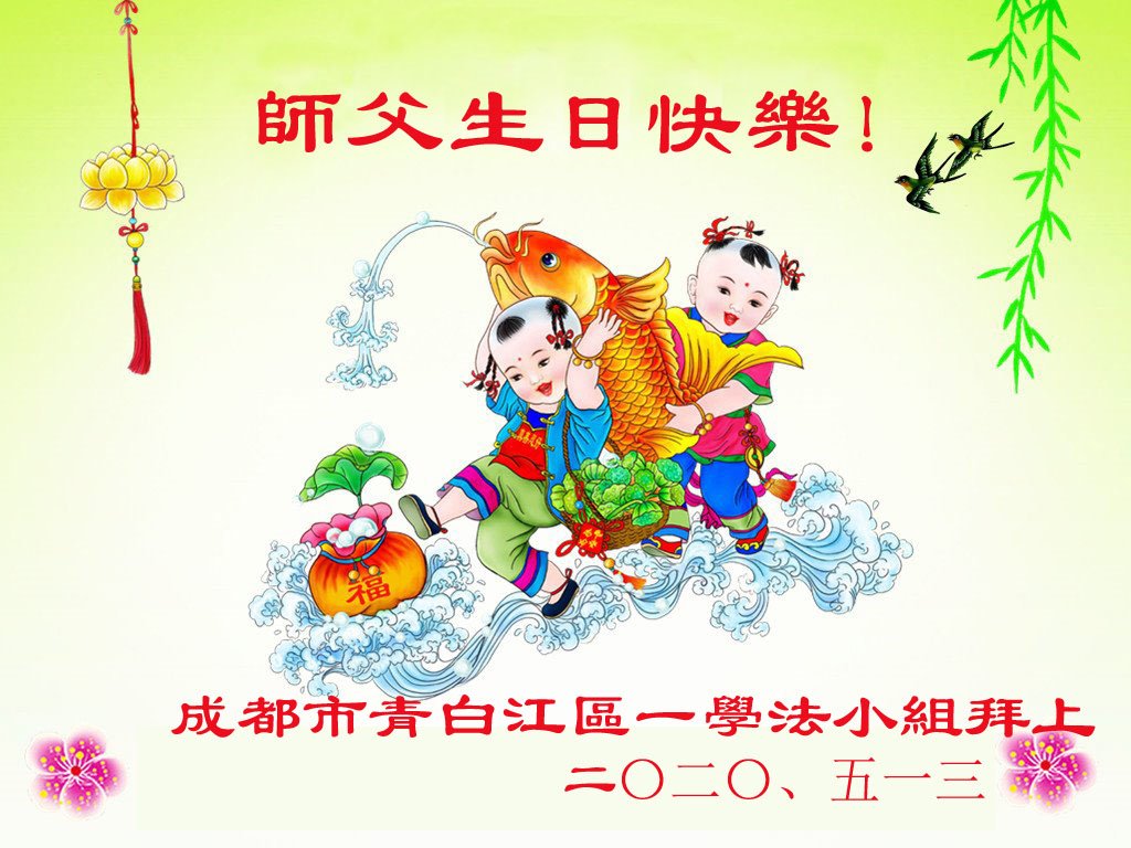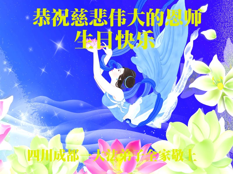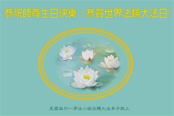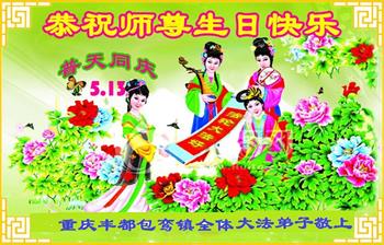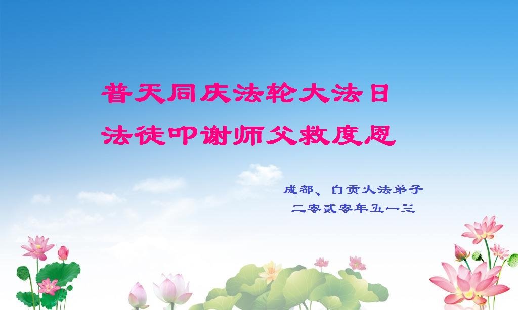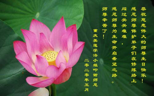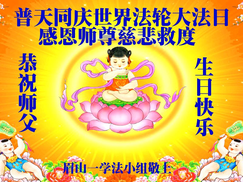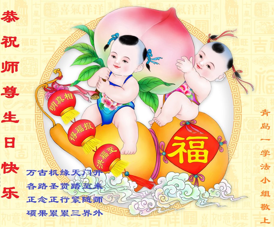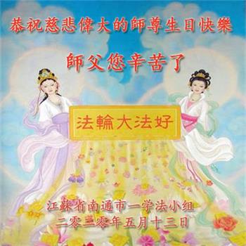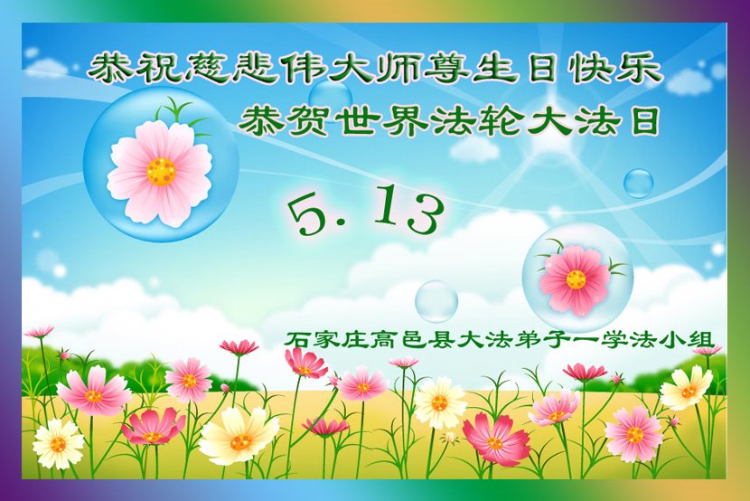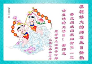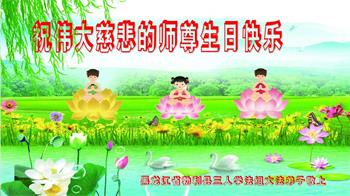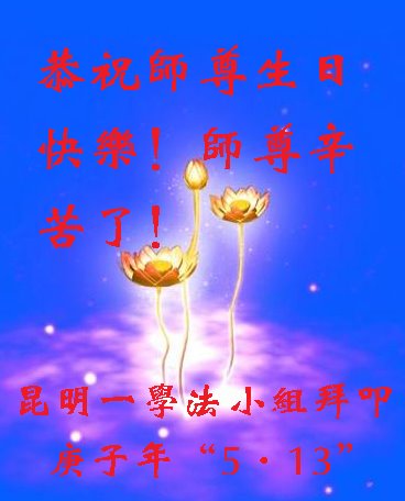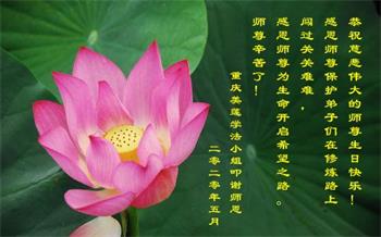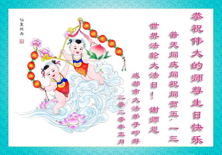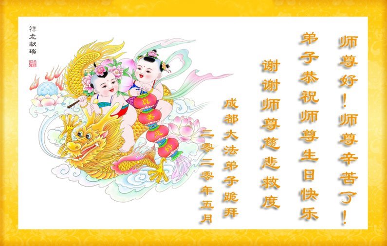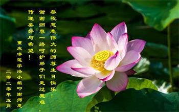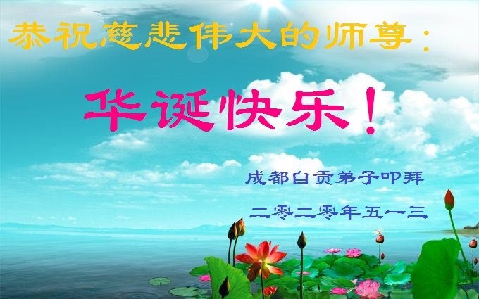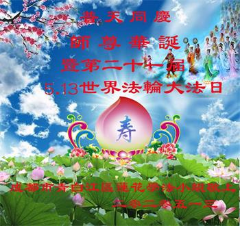 在迎来了慈悲伟大的师父华诞及世界法轮大法日之时,成都北门一学法小组的大法弟子以无比感恩的心情双手合十为慈悲伟大的师父献上最衷心的祝福:祝师父生日快乐!恭贺五一三世界法轮大法日!师父,您辛苦了!