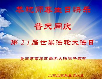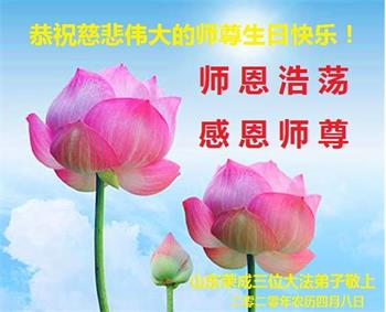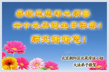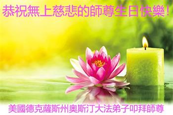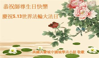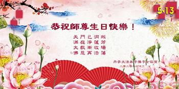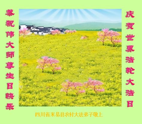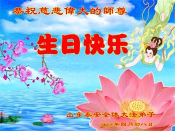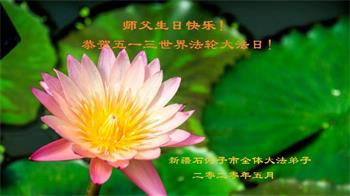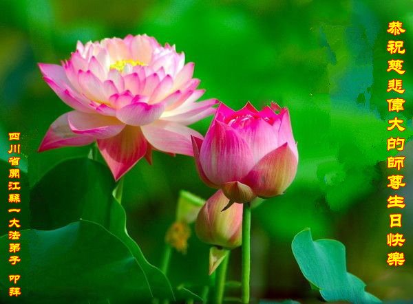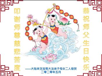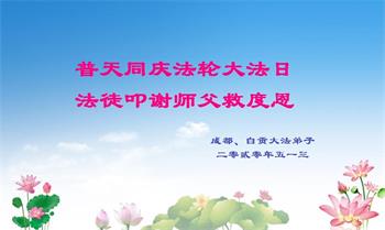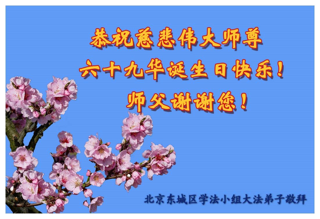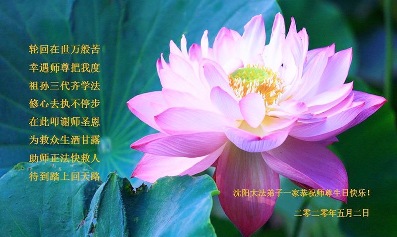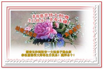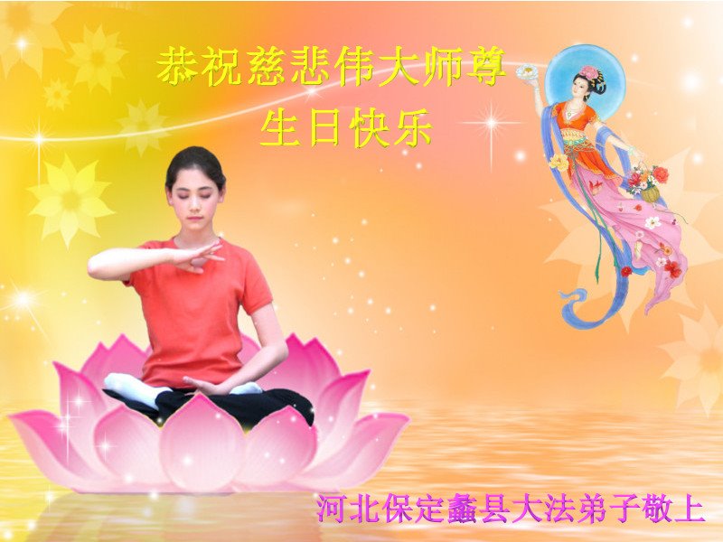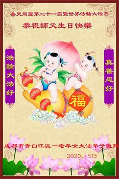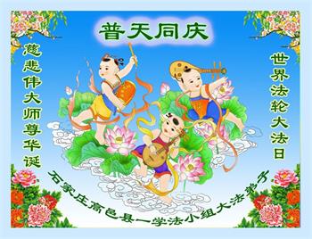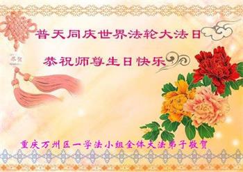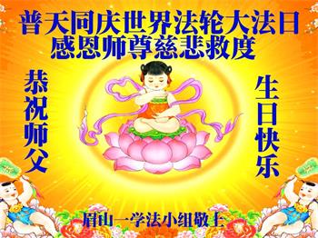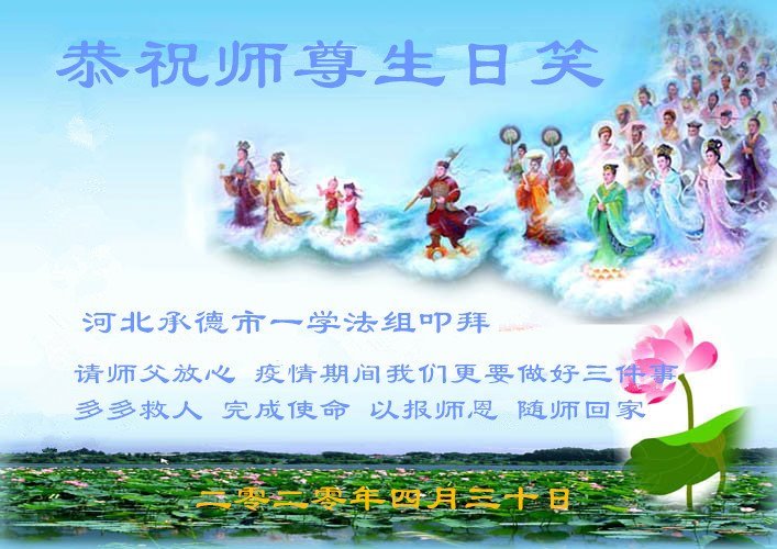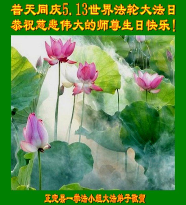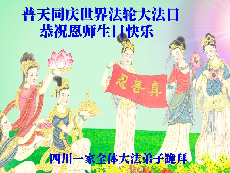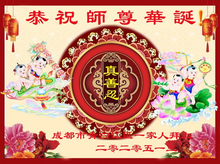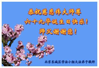 在迎来了慈悲伟大的师父华诞及世界法轮大法日之时,成都北门一学法小组的大法弟子以无比感恩的心情双手合十为慈悲伟大的师父献上最衷心的祝福:祝师父生日快乐!恭贺五一三世界法轮大法日!师父,您辛苦了!
