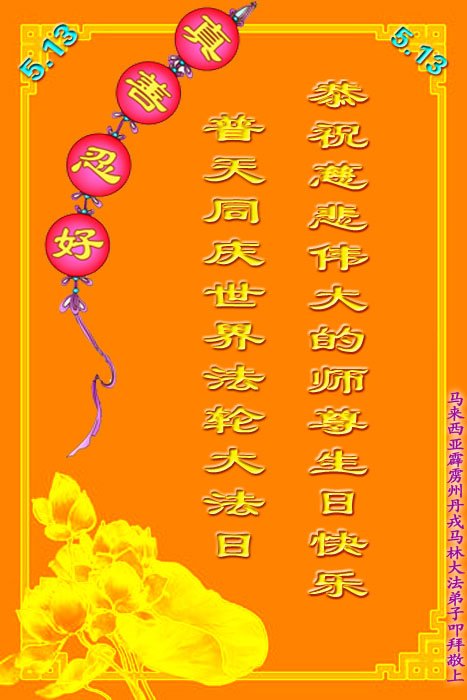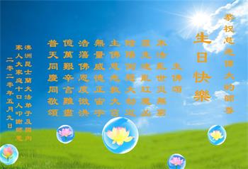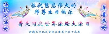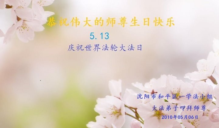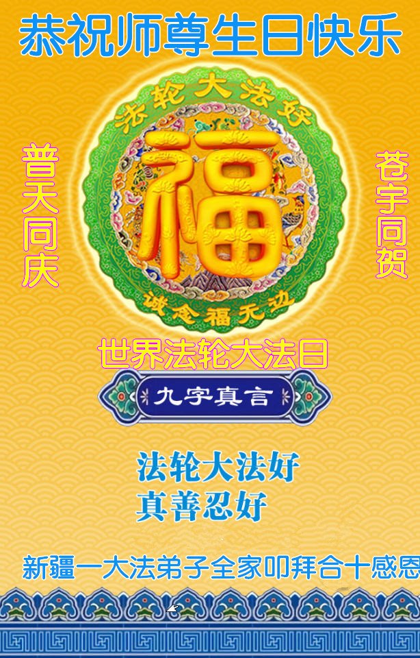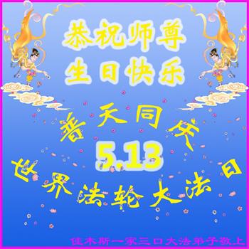 转眼又迎来了普天同庆、同贺、同颂的世界法轮大法日和师尊的伟大生日的喜庆日子,我们上海讲真相三人小组全体弟子以最诚挚的感恩之心,恭祝师尊生日快乐!