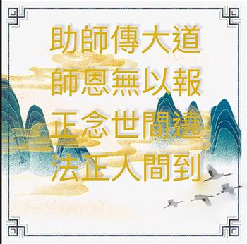 助师正法二十一年,冒着血雨腥风走过了曲折而艰辛的正法修炼之路。作为正法时期的大法弟子,助师正法、救度众生就是我们来世的目地,是我们义不容辞的职责。当今世上的绝大多数人都是师父的亲人,都需要我们救度。