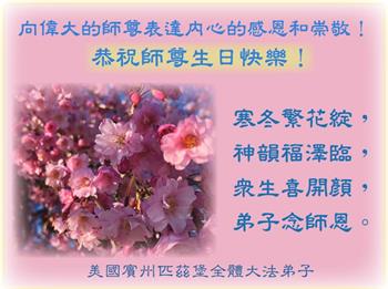 我们有幸和师父同在一世,是多么的荣幸和自豪,也是我们大法弟子千万年修来的福份。我们一定要加倍珍惜这个万古机缘,决不辜负师尊的期望,助师正法,永不回头,做一个合格的大法弟子。