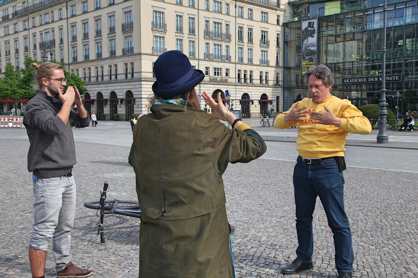 平时,来勃兰登堡门参观的游客络绎不绝。今年因为中共病毒疫情的影响,这里的行人不如往常那样多。但路过的行人中很多人都被学员集体炼功的场面吸引住了,纷纷驻足观看。有的人骑车路过,在旁边停下看了一会,然后主动向学员索要真相传单。还有的行人受到炼功场面的吸引,当场开始学功。