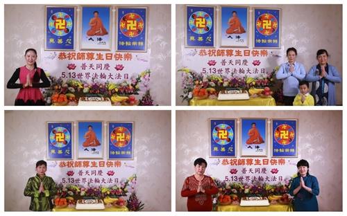 ![]() 图6:越南学员汉娜(Hanna)和家人恭祝李洪志师尊生日快乐。 |