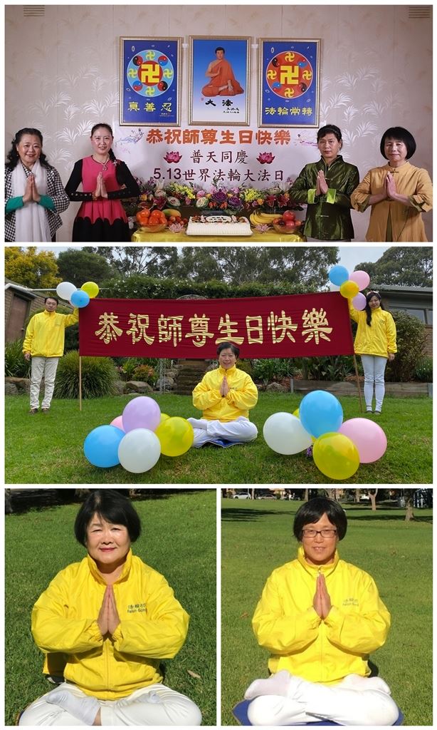 ![]() 图1~4:墨尔本部份中西学员恭祝师尊生日快乐,恭贺“5.13世界法轮大法日”。 |