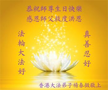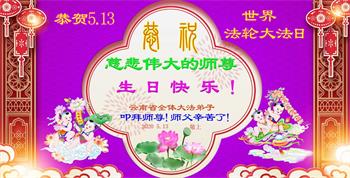 ![]() 图1:香港学员以遍地开花的方式向伟大的师尊祝贺生日快乐。 |