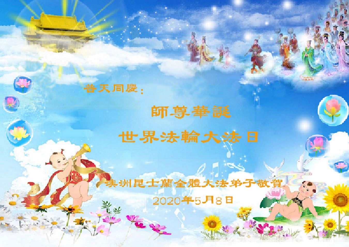 ![]() 图1:澳洲昆士兰全体法轮大法学员们恭祝师父李洪志先生生日快乐! |