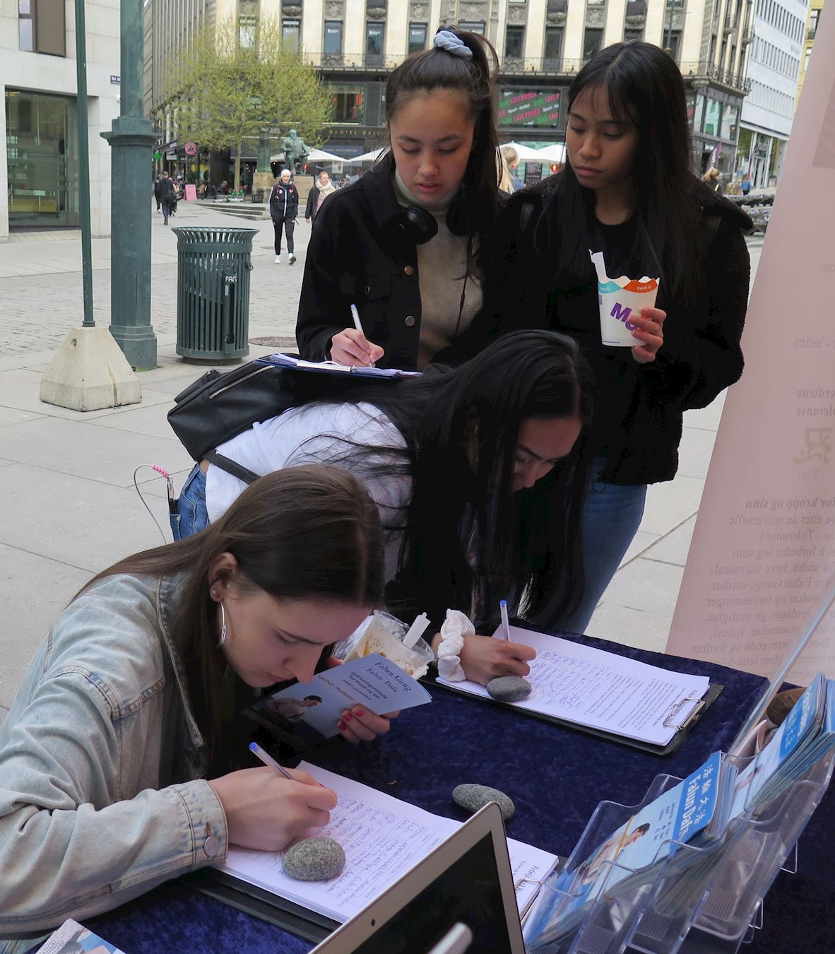 ![]() 图6:五月九日,挪威民众在在一份呼吁挪威国会和政府帮助制止中共活体摘取法轮功学员器官的呼吁书上签名 |