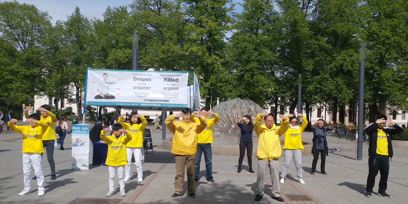 林(Linh)来自越南,三十年前为躲避越共从越南来到挪威。林通过亲戚了解了法轮功,也了解了法轮功学员在中国正遭受着中共政府的迫害。五月九日她随她的外甥和外甥媳妇来到法轮功活动场所。林说:“我是来支持法轮功学员活动的。”一开始她只是在一旁看着学员炼功,慢慢地她学着法轮功学员在小腹部位结印。随后她跟着外甥媳妇学功。离开前她在一份呼吁挪威国会和政府帮助制止中共活体摘取法轮功学员器官的签名表上写下了自己的名字。
