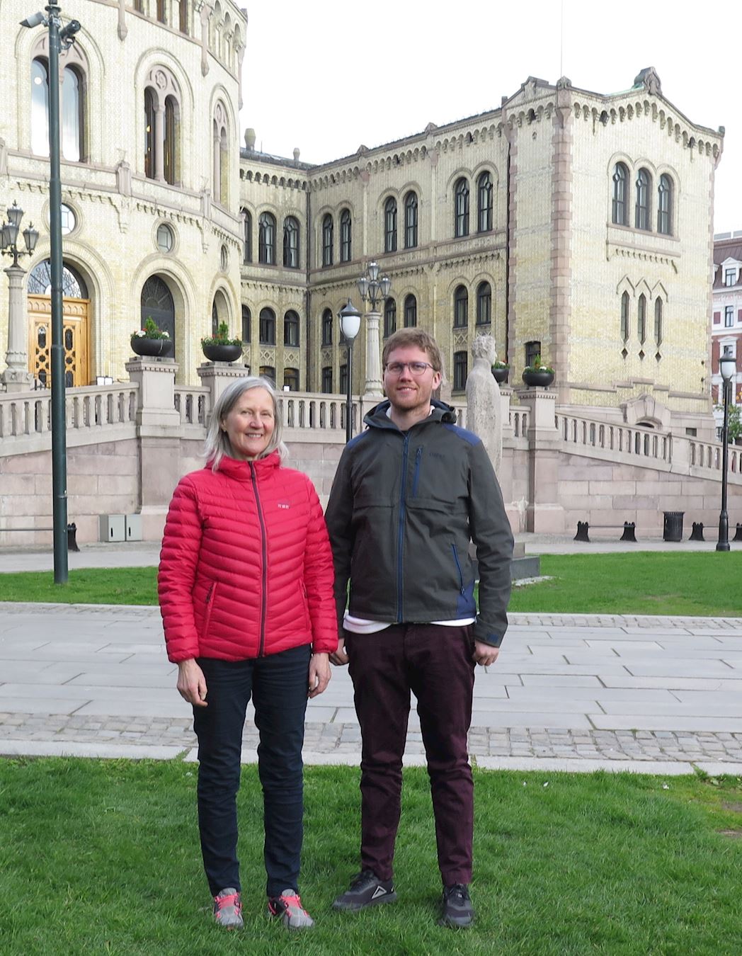 ![]() 图2:五月十三日,挪威小弟子在国会前的草坪上炼功 |