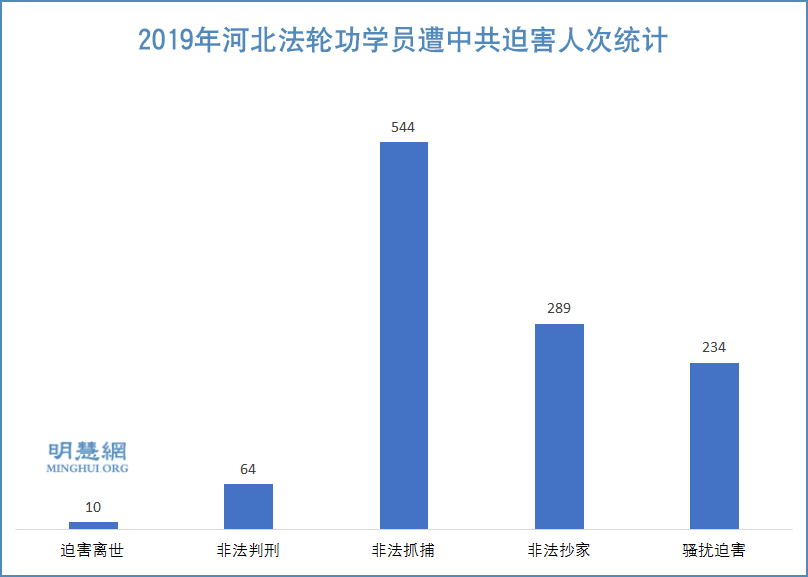 ![]() 图:2019年河北法轮功学员遭中共迫害人次统计 |