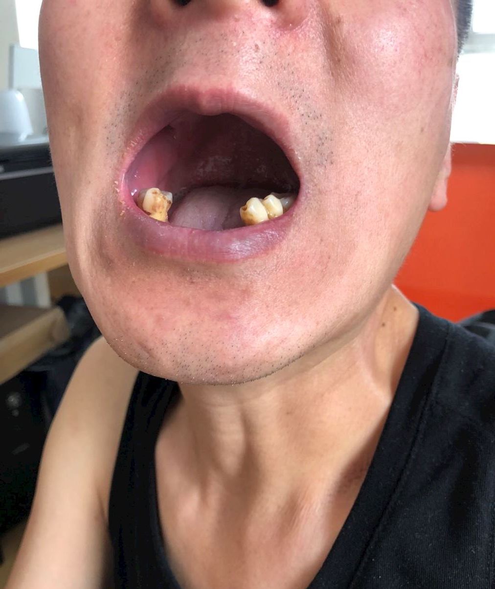 ![]() 刘宏伟被迫害得仅剩下颚的几颗牙齿 |