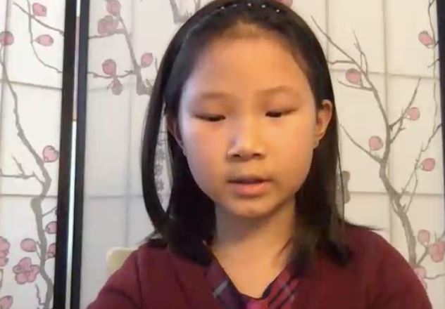 八岁的凯瑟琳(Catherine)是修炼心得交流会上最年轻的发言者。自从中共病毒爆发以来,凯瑟琳每天都在网上与其他年轻的大法弟子一起学习师父的各地讲法一小时,《转法轮》两小时。凯瑟琳还交流了她如何提高心性的故事。她的姐姐喜欢一个她最喜欢的毛绒玩具,当她的姐姐把这毛绒玩具从凯瑟琳身边拿走时,凯瑟琳总是很伤心。凯瑟琳受到点化:大法弟子不应过于重视物质利益,最后,她将这毛绒玩具当作生日礼物送给了姐姐。