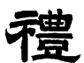 楷书繁体“禮”。【说文解字】:禮,“履”也,所以事神致福也,从“示”,从“豊”。履,足所依也。