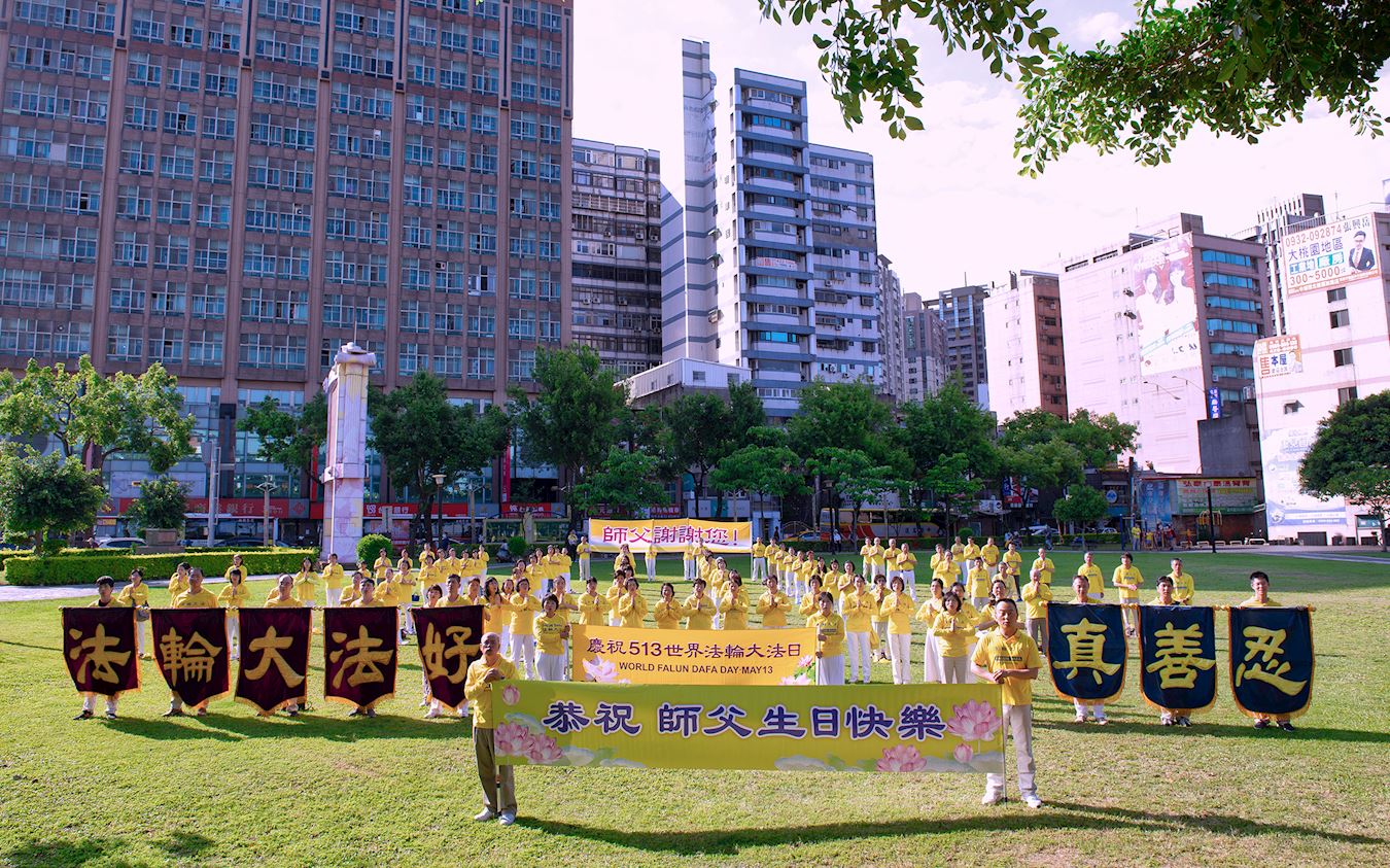 ![]() 图2:二零二零年五月三日,台湾桃园南区部份法轮功学员在中坜中正公园举办恭祝师尊生日快乐。 |