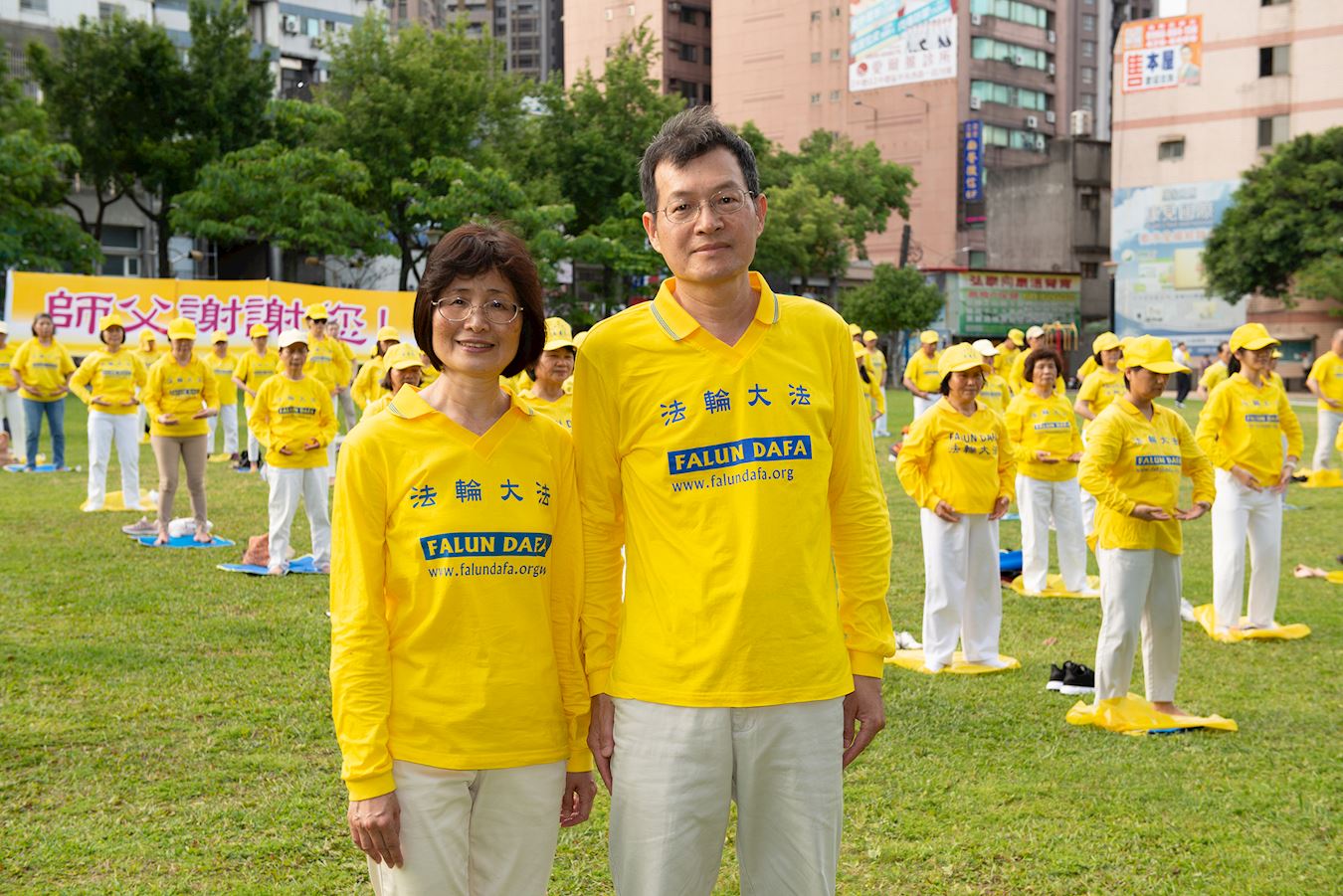 ![]() 图5:蔡振东与太太参加二零二零年五月三日中坜中正公园举办庆祝五一三世界法轮大法日活动。 |