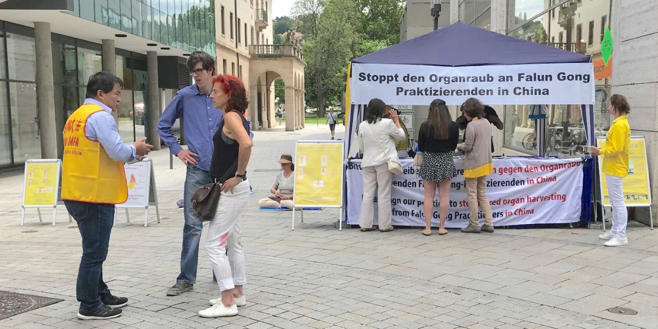 法轮功学员头一次在慕尼黑的红十字广场(Rotkreuzplatz)举办信息日活动。这里了解法轮功真相的人相对少一些,不少人是第一次听说法轮功受到中共长达二十多年的迫害。了解了真相的人们纷纷签名,谴责中共迫害。