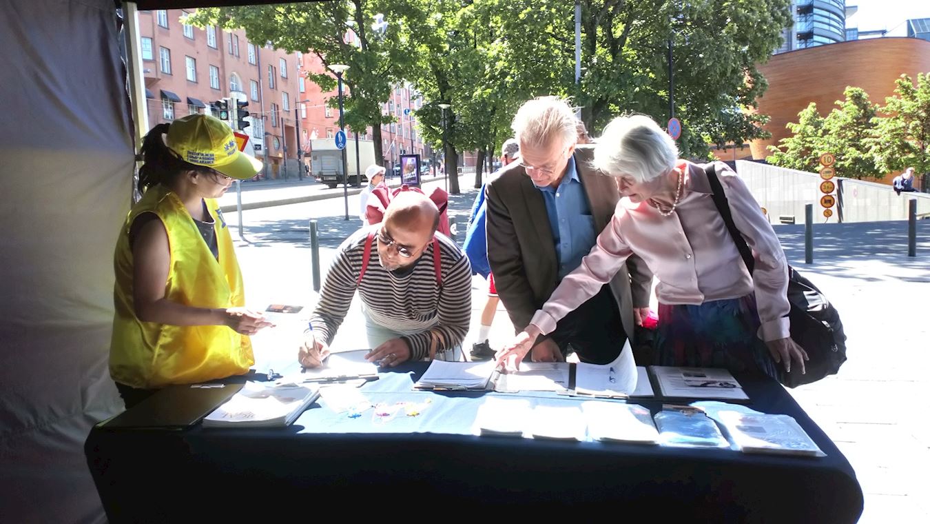 ![]() 图4~5:芬兰市民踊跃为签名支援法轮功反迫害。 |