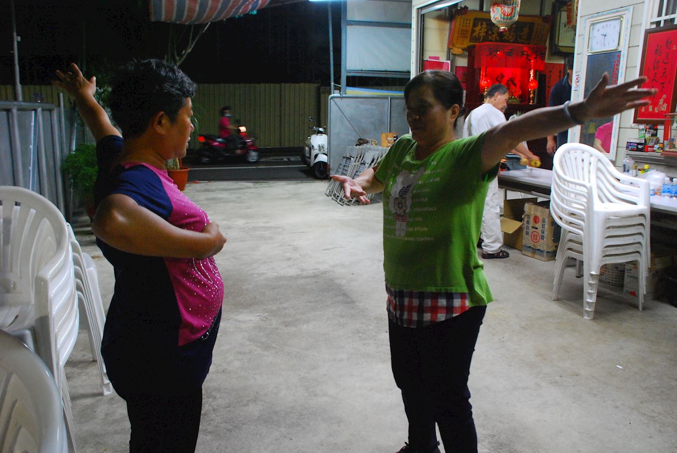 提供场地办“九天学法教功班”的里长学员叶宽鸿说,二、三十位同修聚在一起听师父讲法,感受师父的慈悲,让服务处里充满了祥和。