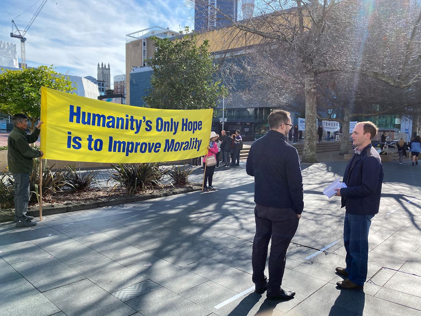 菲利普·福尔摩斯(Phillip Holmes)是一位热心肠的毛利人。他不但帮助法轮功学员发单张,还说要拿去他们的部落派发。他说:中共镇压宗教以及信仰团体。通过在这里举办的各种活动和游行,我了解到那些无辜的人是如何被虐杀的。中共的所作所为是错误的、是邪恶的。在新西兰,宗教信仰和言论自由是天经地义的,你们可以在这里自由的谈论和选择。可是在中国这些都被限制和打压。我建议你们可以找找当地的毛利族裔以及他们的媒体,他们一定会帮助你们。我希望有更多的人站出来帮你们。